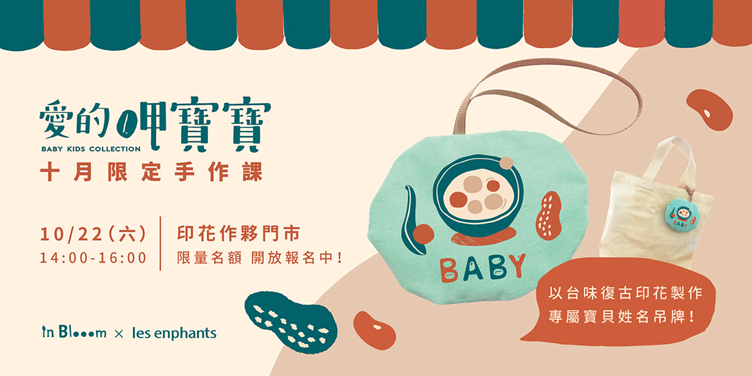 以充滿台味的「呼呼熱甜湯」復古印花系列,串起大人、小孩心中的美好回憶!邀請您來到大稻程百年老宅內,體驗限定手作課程,製作專屬寶貝的姓名吊牌!