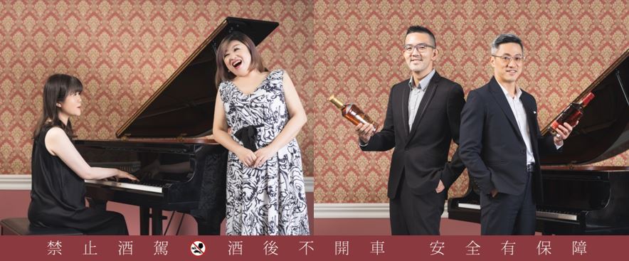(圖片左起:鋼琴家 徐嘉琪、音樂作家 焦元溥、女高音 林慈音、格蘭菲迪單一麥芽威士忌品牌大使 James)