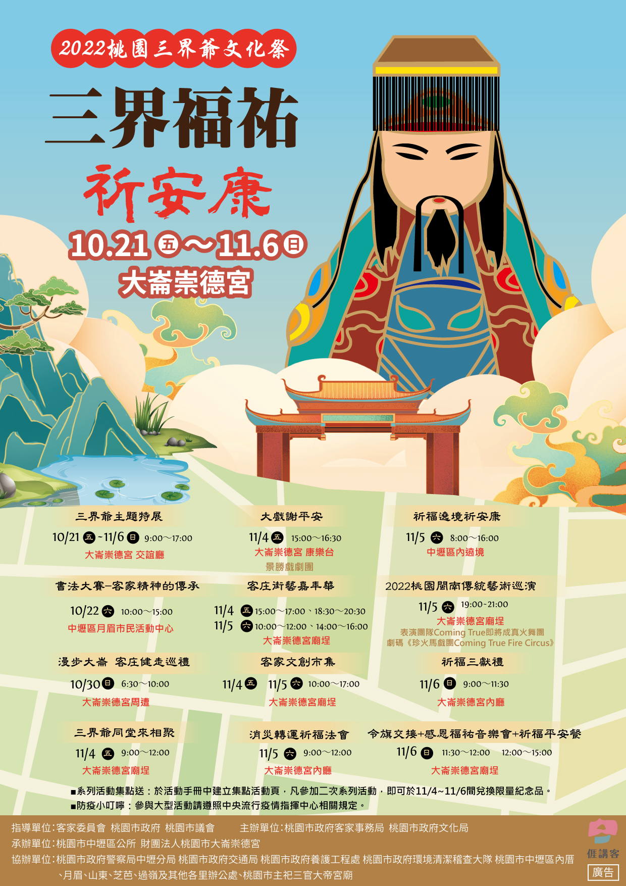 大崙崇德宮公佈欄及2022桃園三界爺文化祭臉書專業公告。