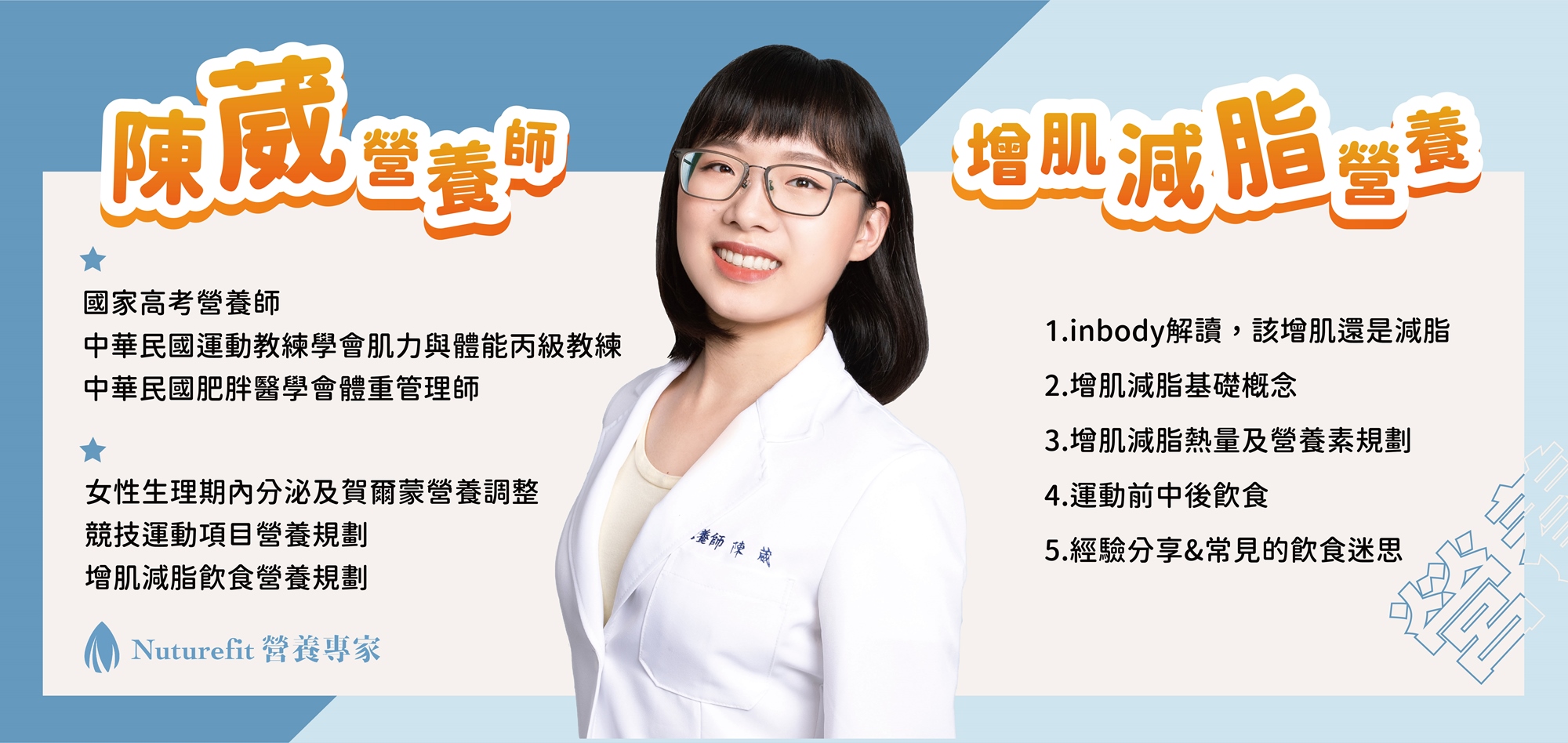 陳葳營養師透過這一小時,融合飲食知識面及自身運動經驗,在增肌減脂過程中更有效率!