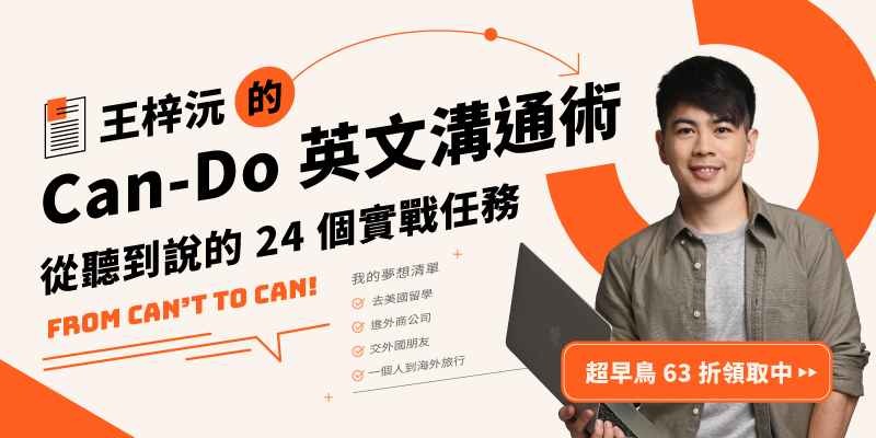 只有一場演講還不夠!我們特別為本次活動準備了「線上課程套票」,會是《王梓沅的 Can-Do 英文溝通術》這堂全新線上課程的最低價,讓早鳥學生搶先獲得課程資格,限量 300 組,手速太慢就搶不到囉~