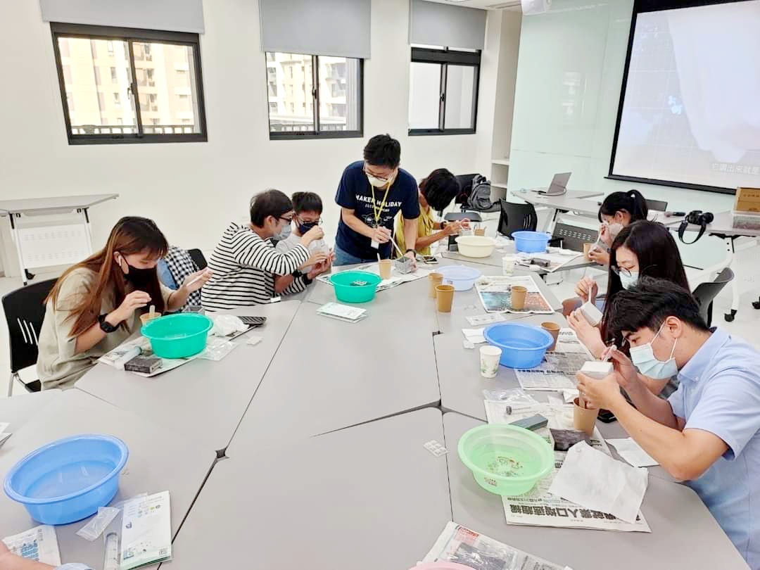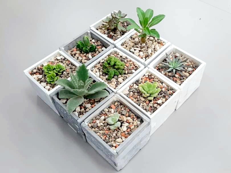 △ 活動內容:在講師的帶領下,現場示範將撿拾回來的廢棄水泥、碎石磨碎,接著按照比例混合水泥粉、水以及小碎石翻模進行翻模,接著運用五片拼板組合出一個6*6公分的方形水泥盆器。學會可以利用這些水泥拼板透過打磨讓表面變得平整,組裝成為屬於自己獨一無二的盆器!另外,現場提供數種多植物讓大家選擇種植帶回 ^^
