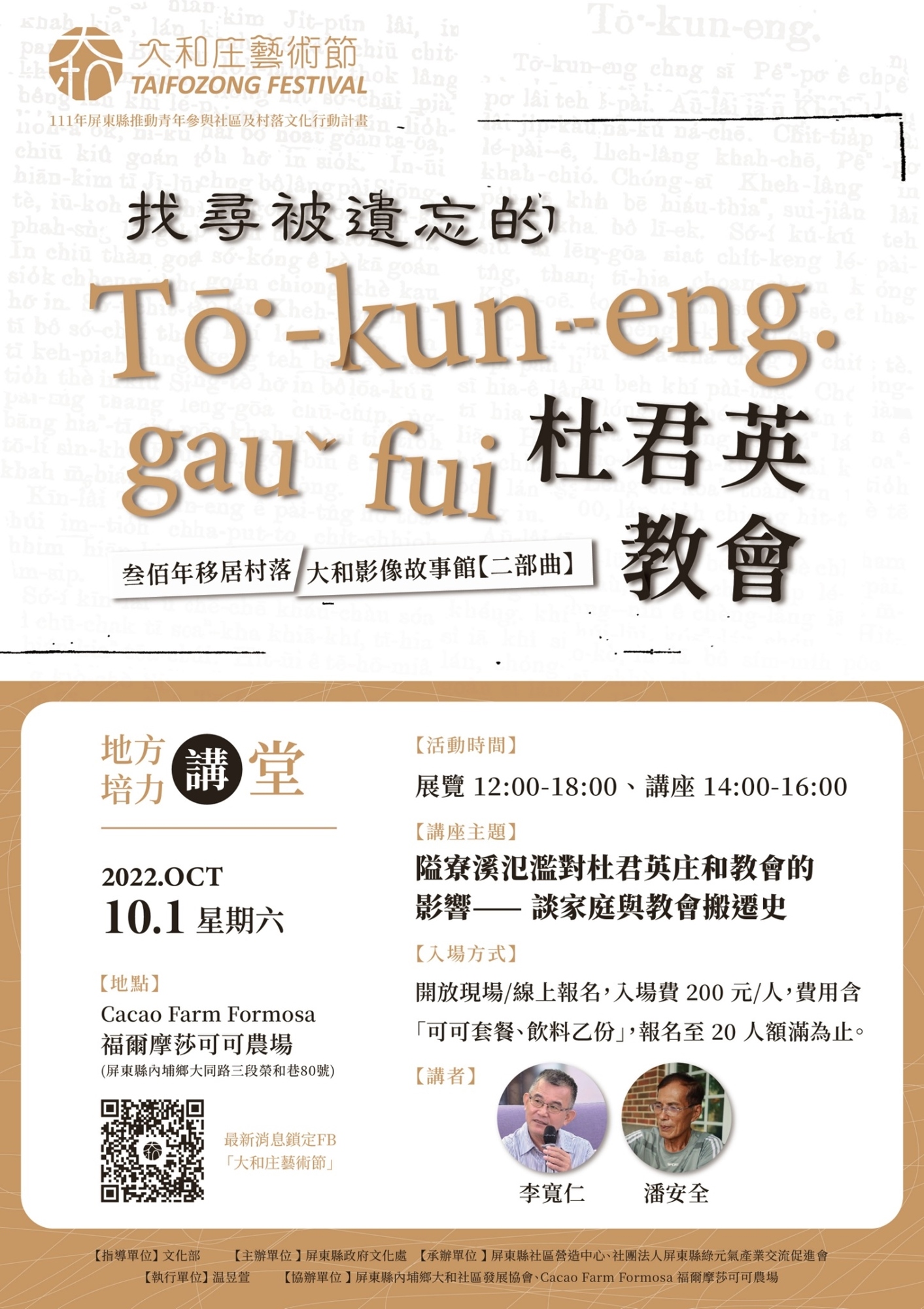 協辦單位 : 屏東縣內埔鄉大和社區發展協會、Cacao Farm Formosa 福爾摩莎可可農場