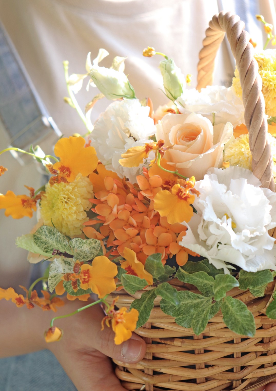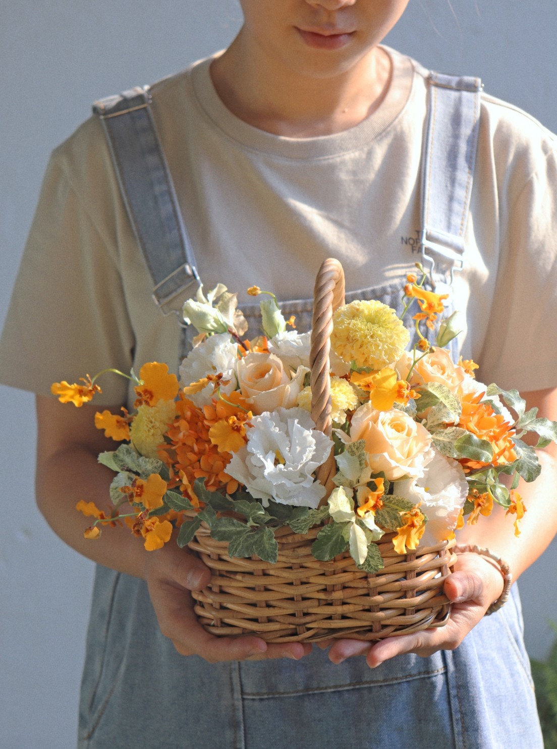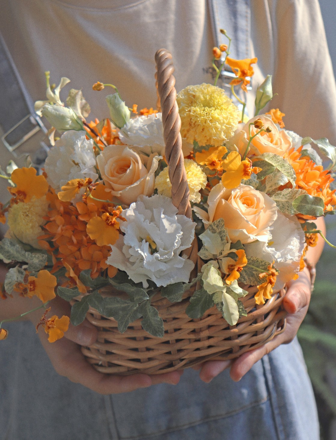 主花 : 萬壽菊、白桔梗、香檳玫瑰