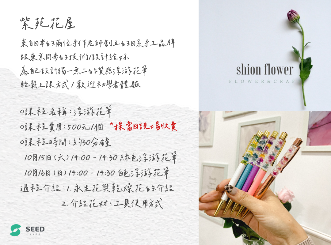 【紫苑花屋】浮游花筆體驗課程