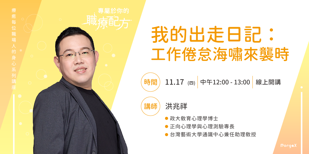 在年底結束前,邀請每一位迷惘、困惑、疲倦的職場人在11月和我們一起療癒身心,在每場講座後領取專屬於你的【職療配方】吧 !