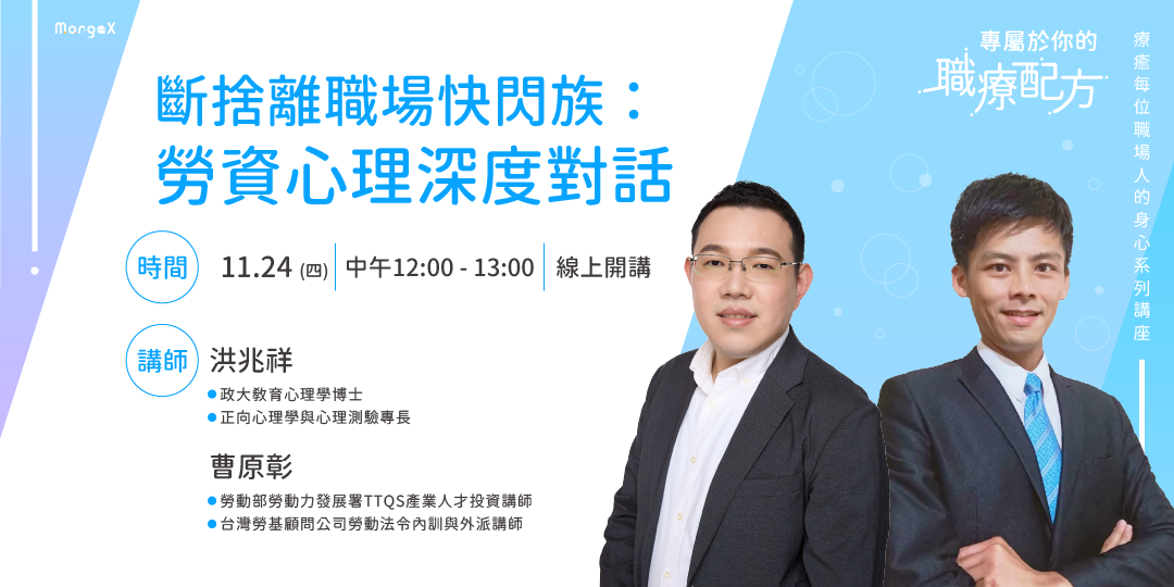 人在江湖上要知道怎麼做人,也要知道能保護你的措施法條!在最後一場職療講座中,我們邀請勞資法務專業與心理教育專業的顧問講師來對談,無論你是否為企業人資或是其他部門的職員,法務實例和我們一般想像其實真的有很多需要特別注意的事項呢!