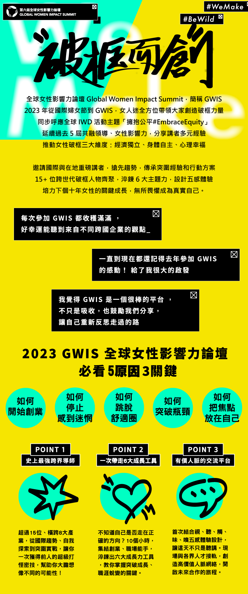 而在 2023 從國際婦女節到 GWIS,透過系列策展內容、生命故事、工作坊與論壇,