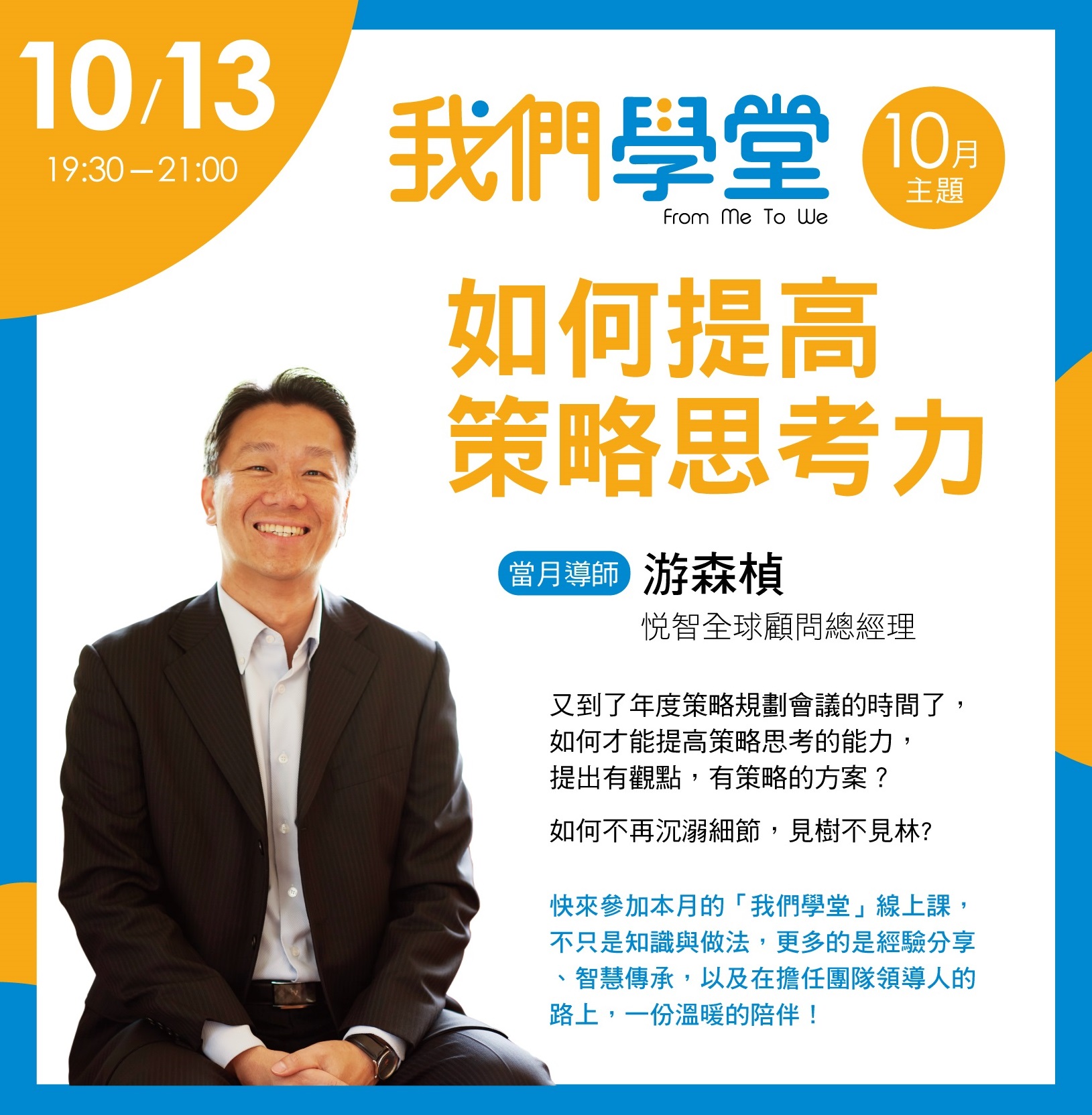 讓悅智全球顧問總經理 游森楨分享他多年來的豐富經驗,並解答你的困惑,激發反思,協助你成為更好的領導人!