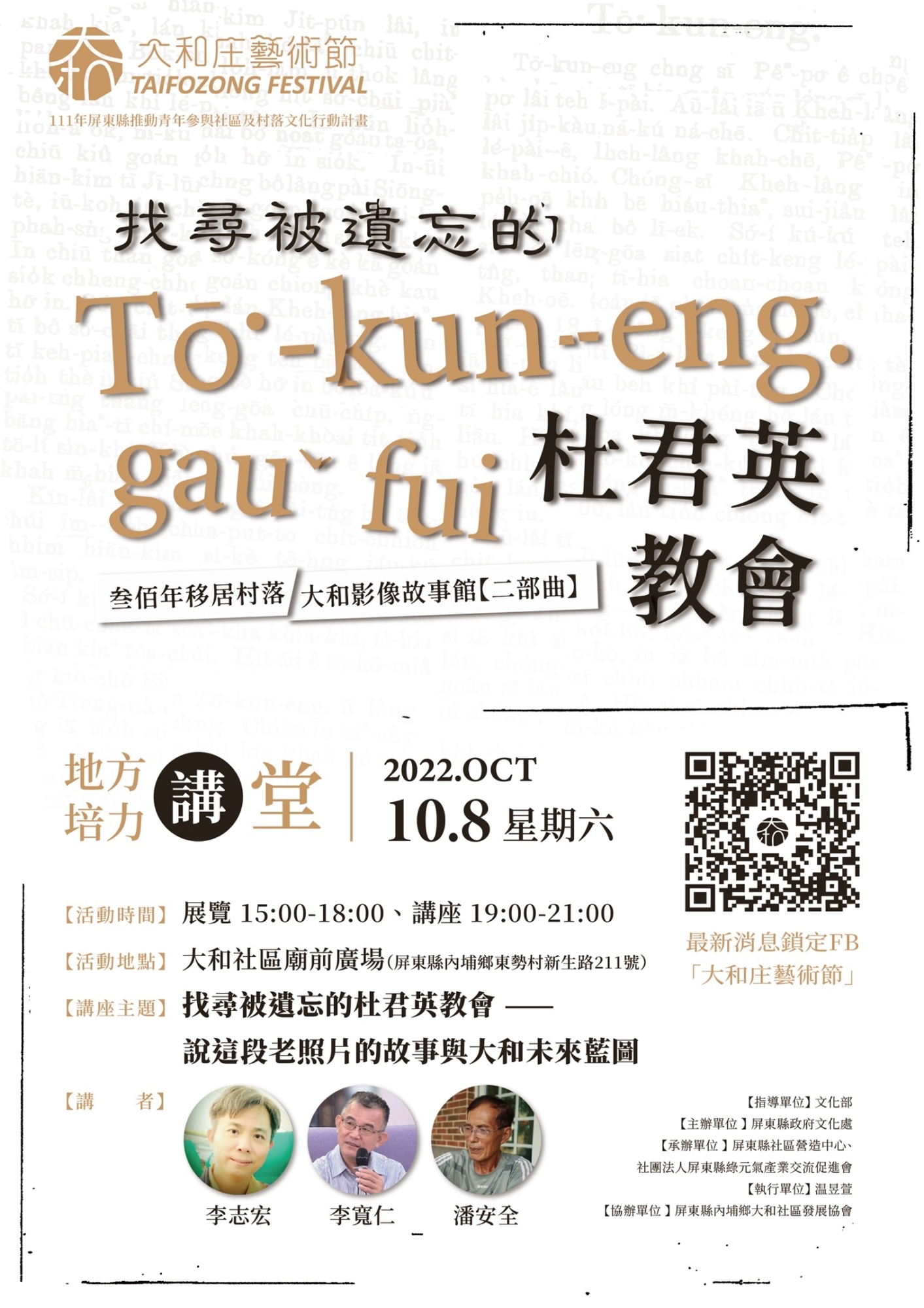 【地方培力講堂】找尋被遺忘的杜君英教會 — 說這段老照片的故事與大和未來藍圖