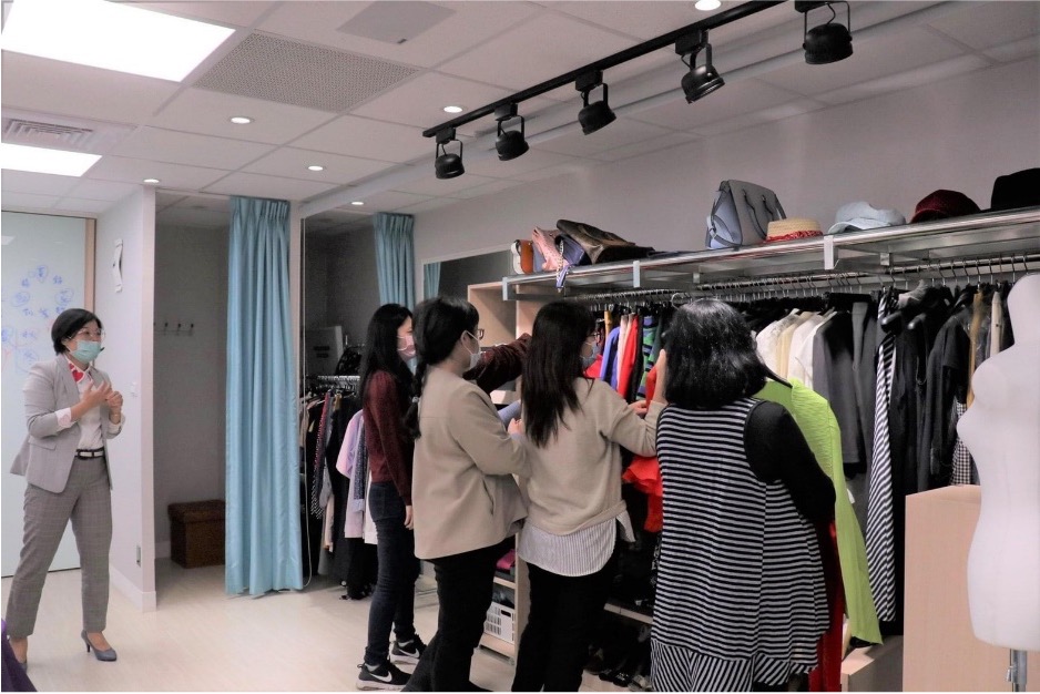 (學院附設二間更衣室,實際穿搭換裝練習,提供置身服飾店挑選服飾的場景,增加審美判斷的臨場感)