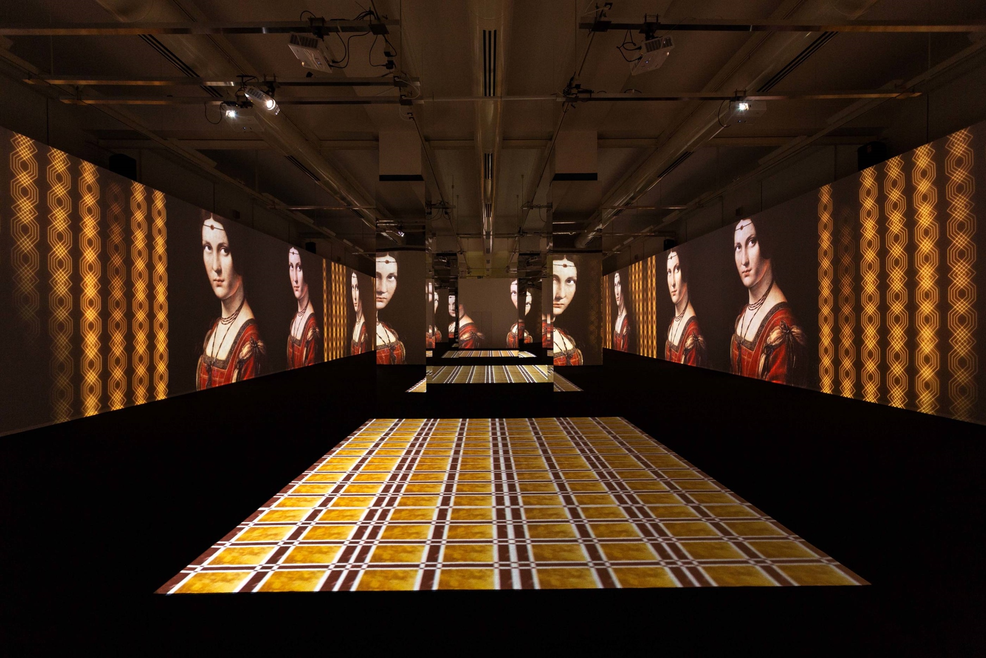 360度環景投影的動態影像設計,將達文西各幅經典畫作的元素圖像化。展間將一幅幅達文西的畫作以大螢幕投影呈現,近距離解析大師筆觸與色彩,部分畫作更特別使用動態方式呈現將經典名畫及背後故事。同時也呈現達文西創作的各類草圖,見證了他在科學領域的前瞻見解。