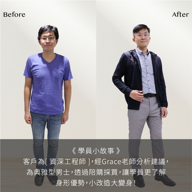 透過課程,老師將依學員「身材比例、皮膚色彩屬性、人格特質」展現最能凸顯個人優勢的穿搭