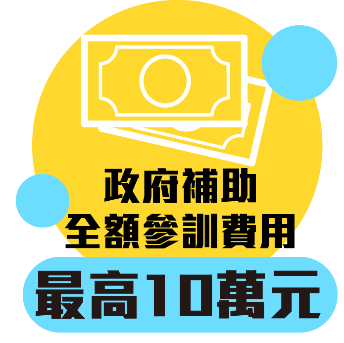 - 政府補助15~29歲無勞保身分全額訓練費用,最高10萬元。