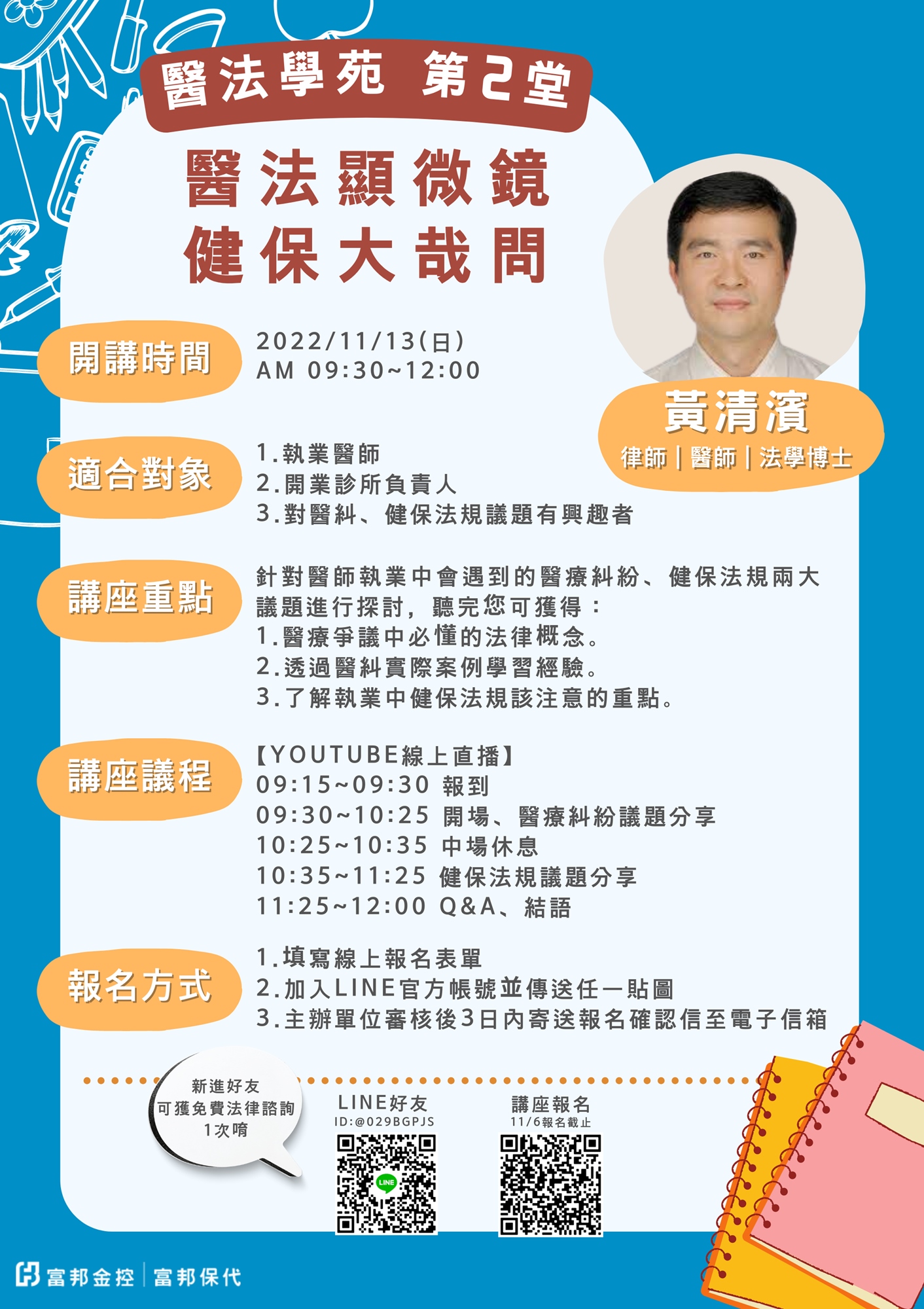富邦醫法學苑第2堂【醫法顯微鏡,健保大哉問】