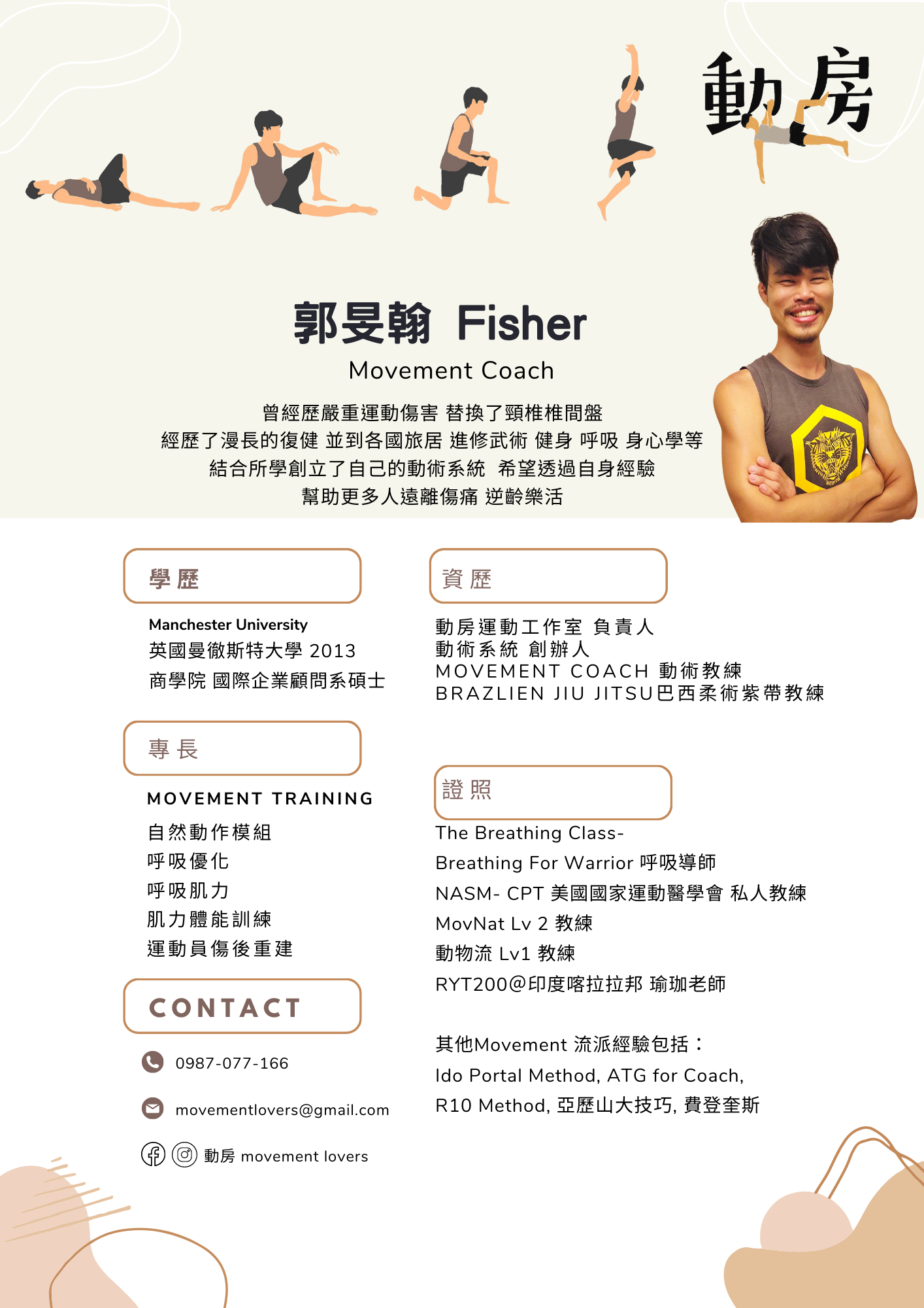 從事多年的瑜珈,武術,跑酷運動中,歸納出人體共通的動作模組,