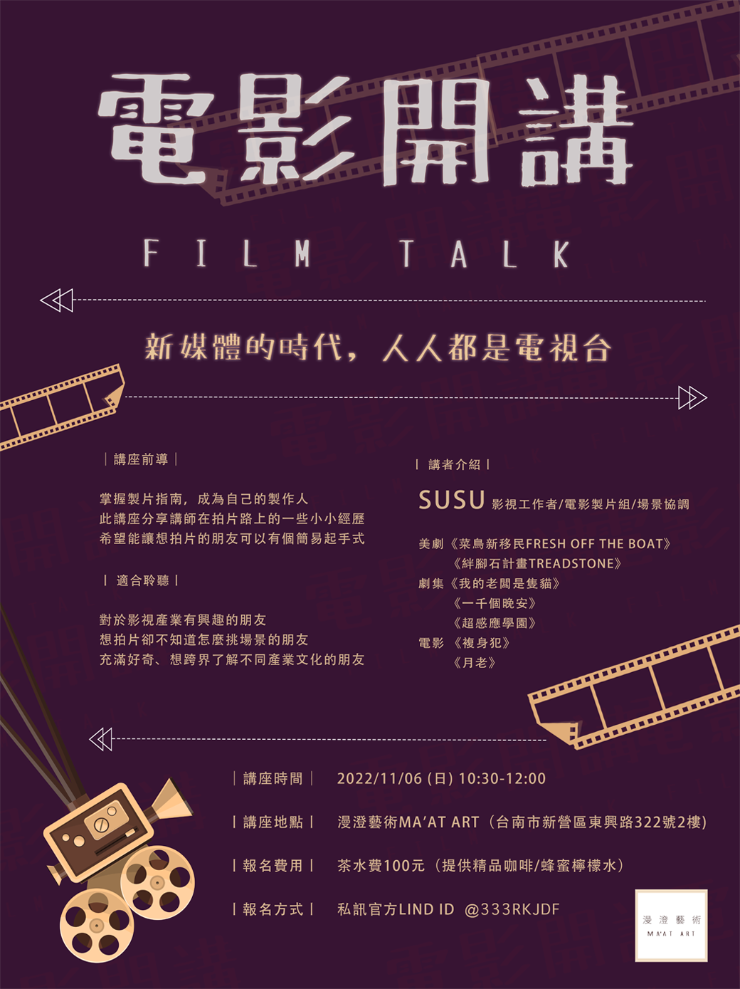 此講座分享講師在拍片路上的一些小小經歷,希望能夠讓想拍片的朋友可以有個簡易起手式~!
