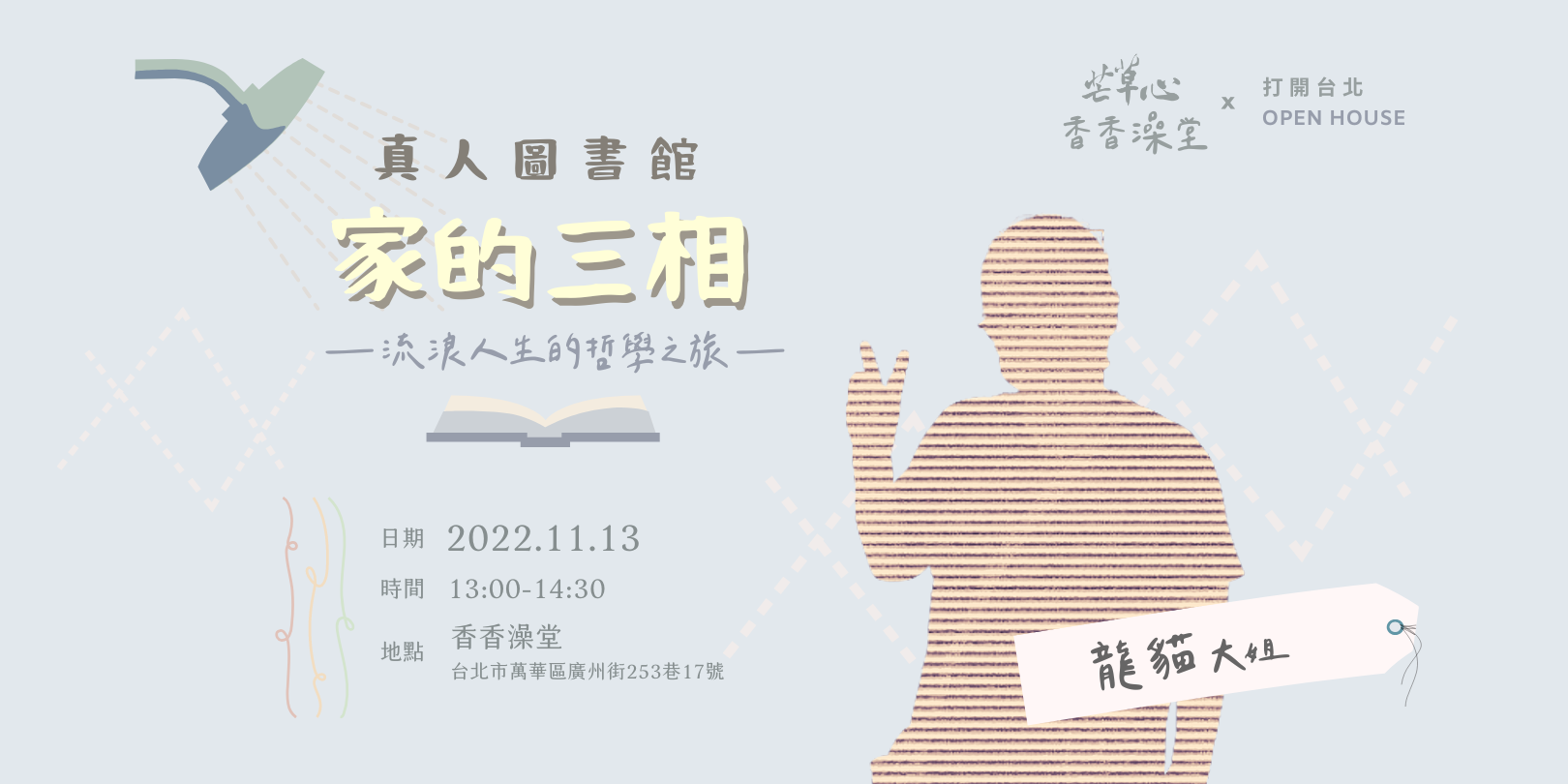 這次的 OPEN HOUSE TAIPEI,我們將在香香澡堂舉辦「真人圖書館」,