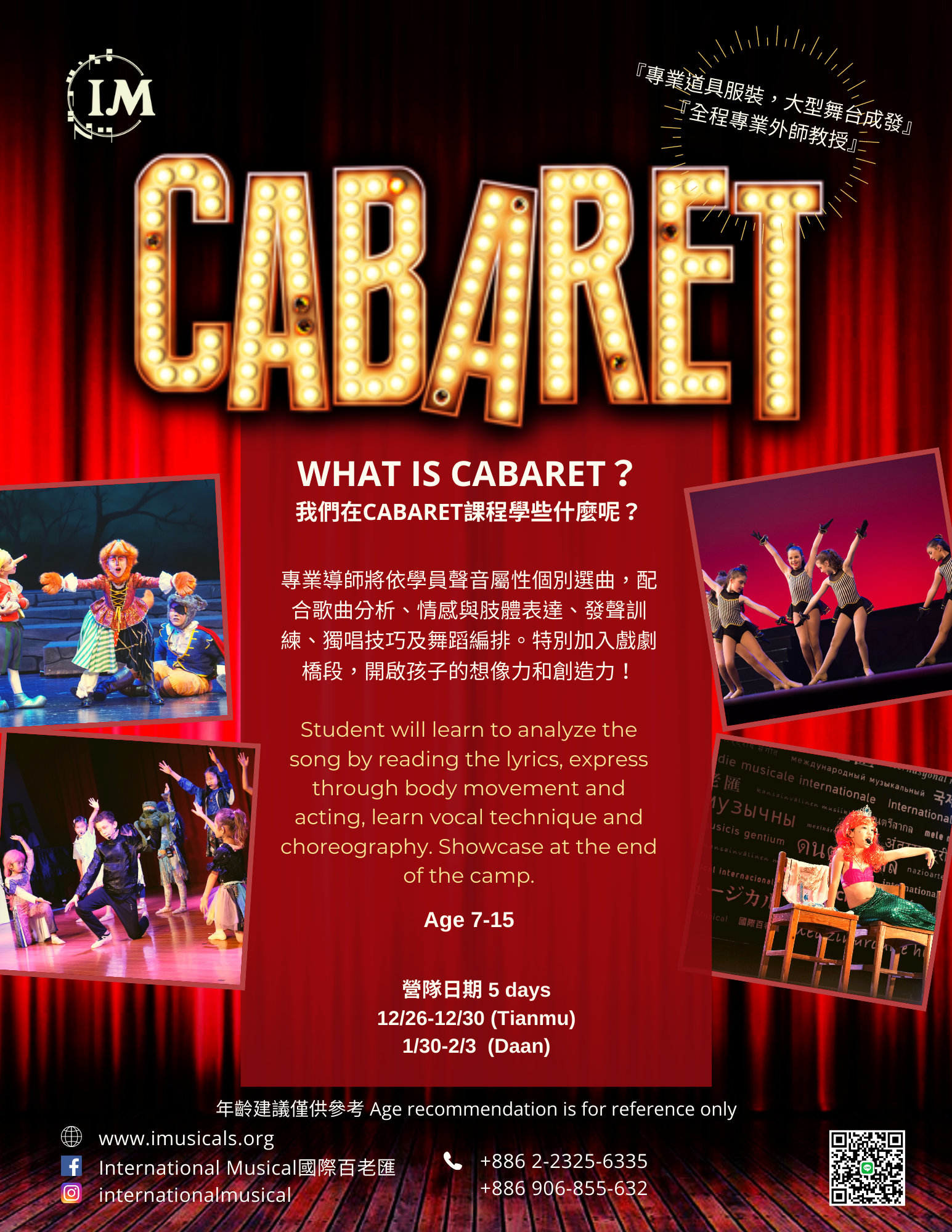 (大安校區) IM國際百老匯-Cabaret-音樂劇唱跳訓練營 1/30(Mon)-2/3(Fri) 5日營