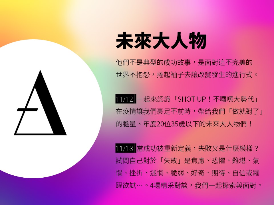--------11/13(日)壯膽導師 x 歷屆未來大人物和你「擁抱失敗」--------