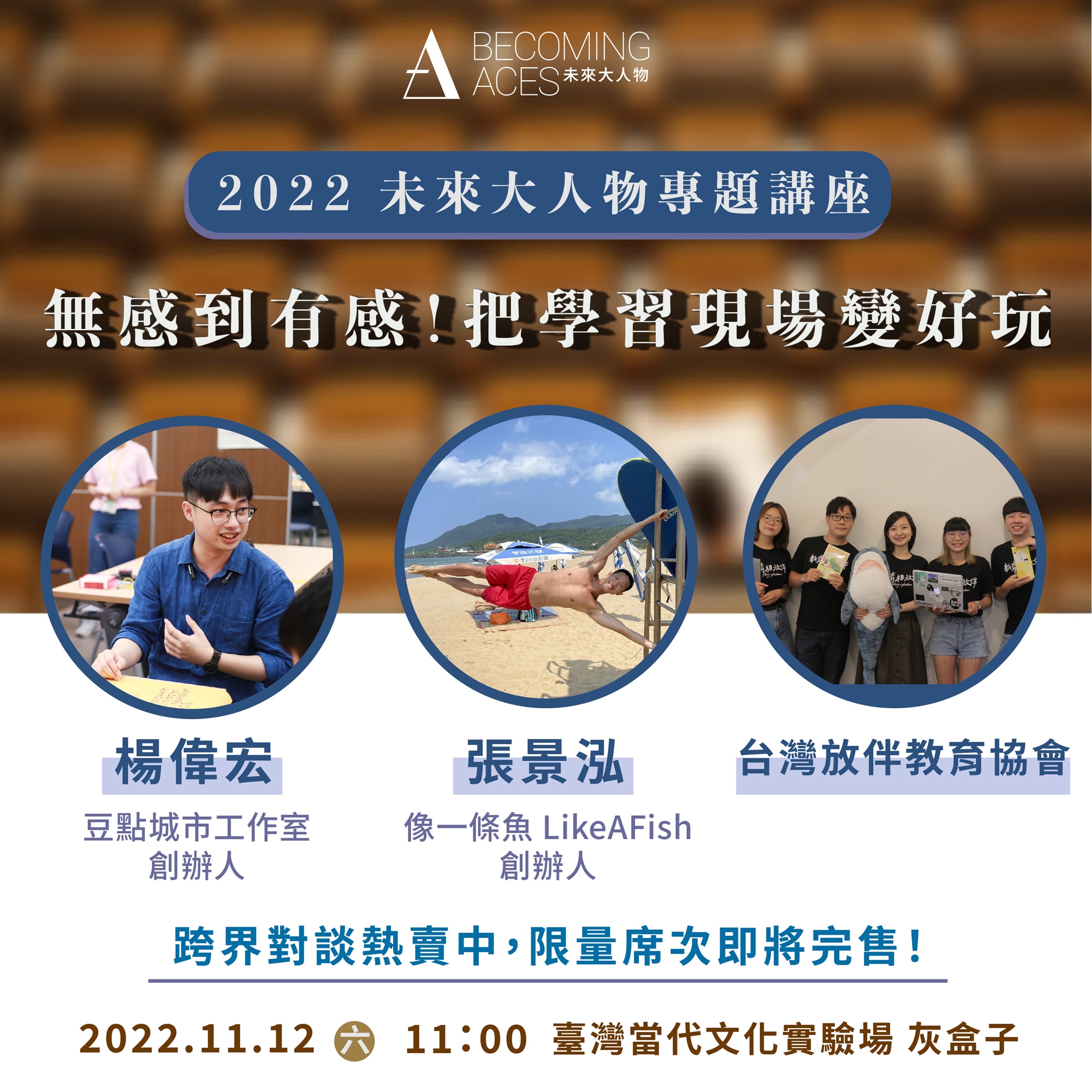 | 11:00-12:00 | 無感到有感!把學習現場變好玩 豆點城市 楊偉宏 x 像一條魚 LikeAFish 張景泓 x 台灣放伴教育協會 |