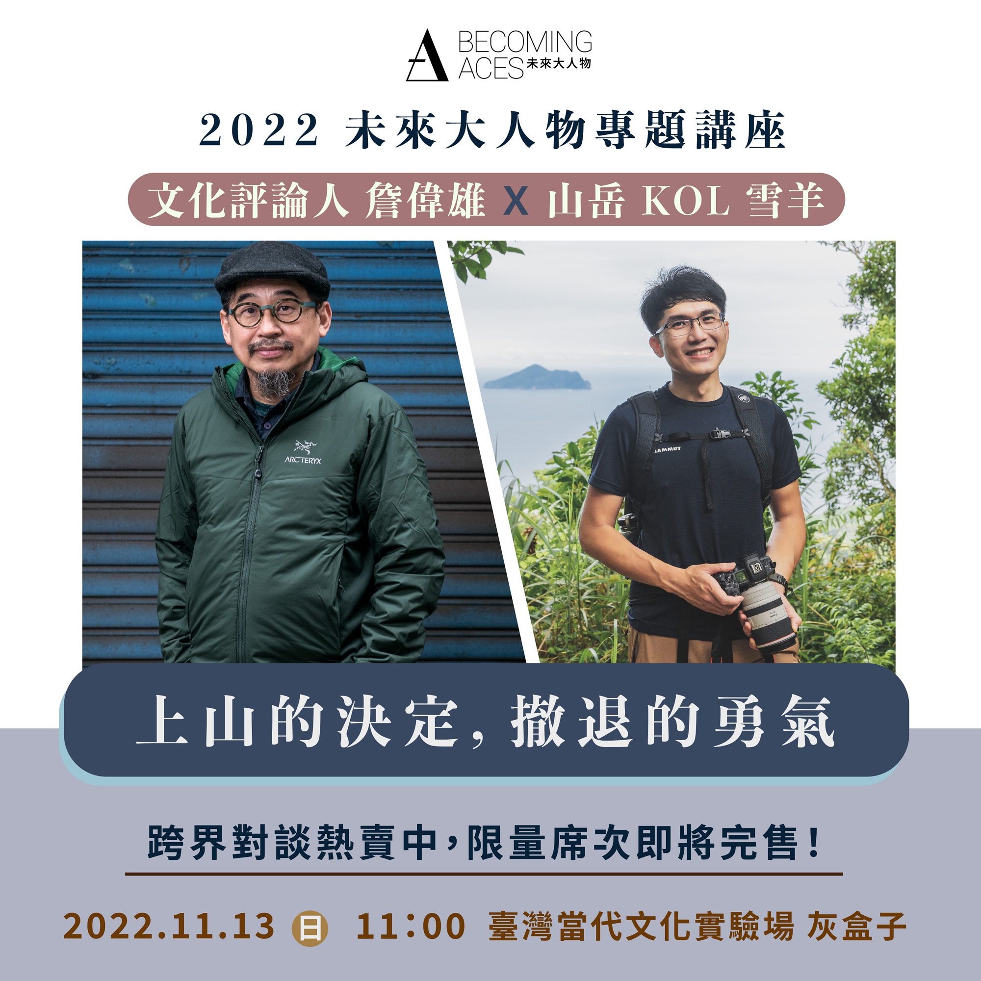 | 11:00-12:00 | 上山的決定,撤退的勇氣 文化評論人 詹偉雄 x 山岳 KOL 雪羊 |