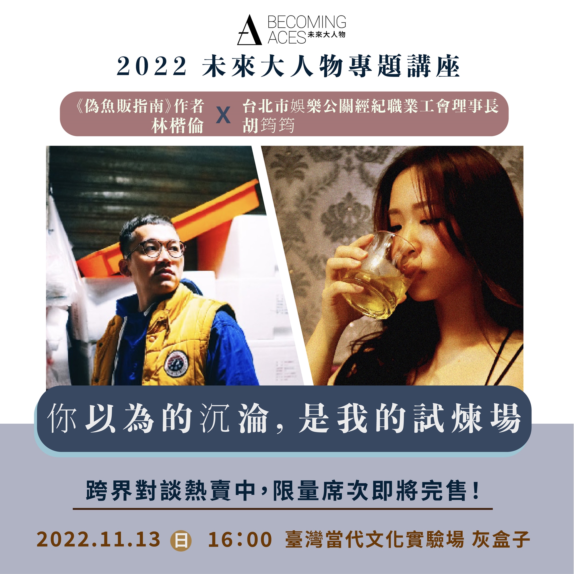| 16:00-17:00 | 你以為的沉淪,是我的試煉場 《偽魚販指南》作者 林楷倫 x 台北市娛樂公關經紀職業工會理事長 胡筠筠 |