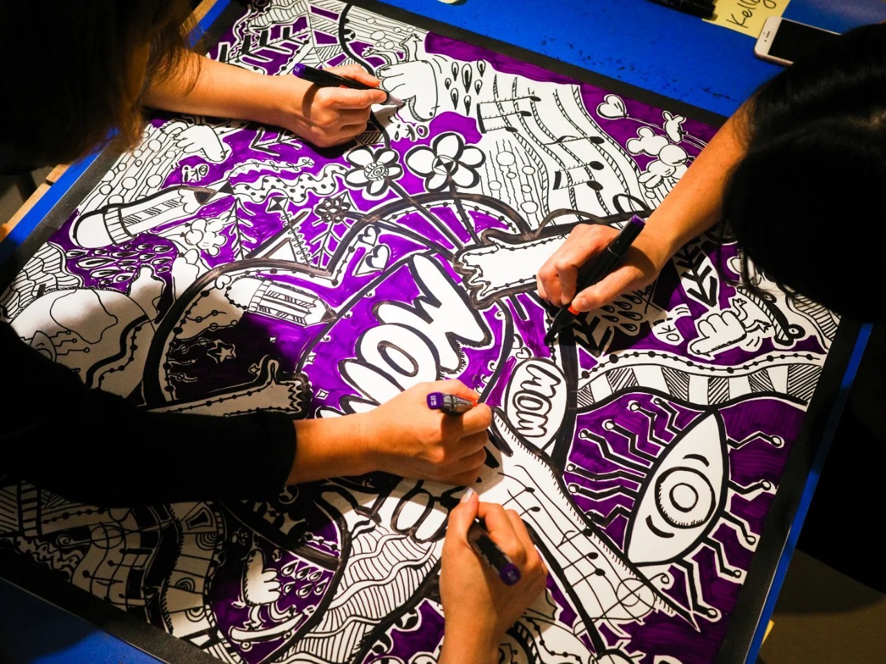 和參與同學們共同創作一幅90cm*90cm的大畫布作品