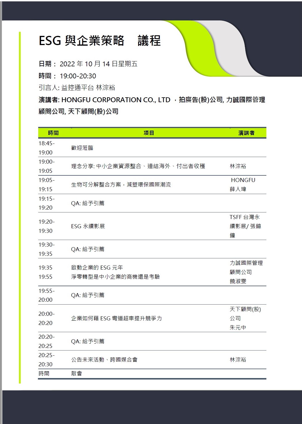 舉辦時間: 2022年10月14日(五) 19:00-20:30