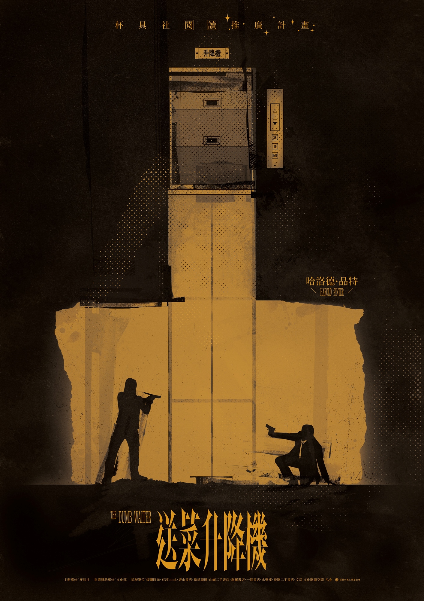 《送菜升降機》為英國劇作家哈洛德•品特於1957年寫就之作,劇中露臉的唯有班與格斯兩個角色,他們是兩名殺手,待在地下室裡等著他們的上級發號施令。地下室裡有門、窗與一台送菜升降機,即使有門窗,班與格斯仍舊無路可出,在接到指示以前,他們必須隱藏自己。不料,不受控制的是那台送菜升降機,它不知為何動了起來,也不知是誰在升降機的另一頭不斷地向他們點餐,拿走了他們所有的食物。兩名殺手被門外遞進來的信封還有不斷上上下下的送菜升降機搞得心神不寧,品特透過殺手受到的威脅達到喜劇效果,讓《送菜升降機》成了他的代表劇作之一。