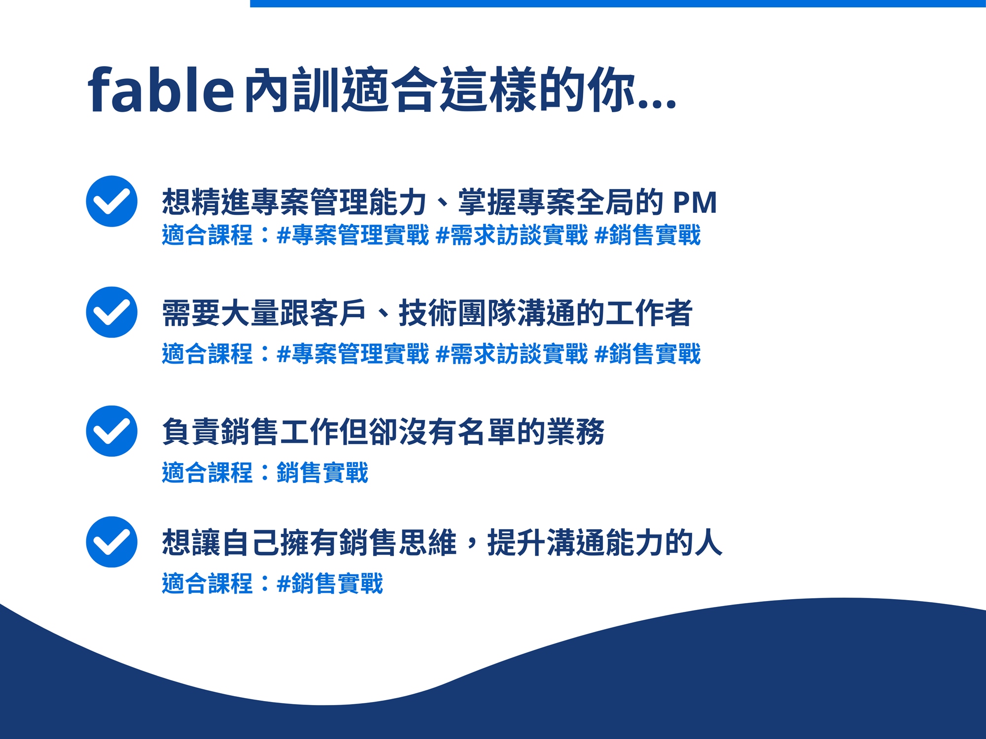 在 fable 我們相信,「所有的數位計畫,從 PM/管理者 的養成開始」。