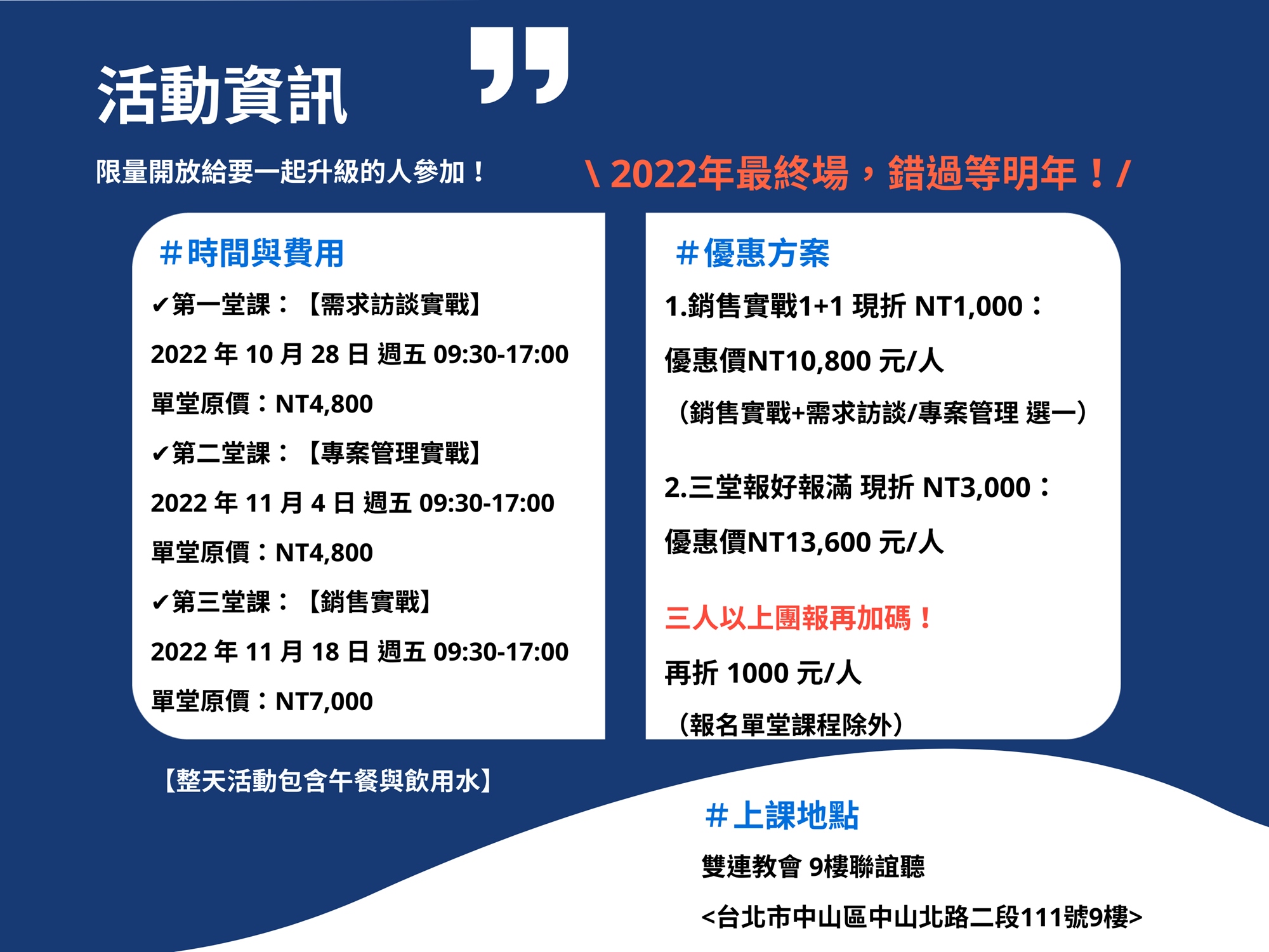 請報名後,待接到主辦方確認信/電話主動告知需使用團購方案即可。