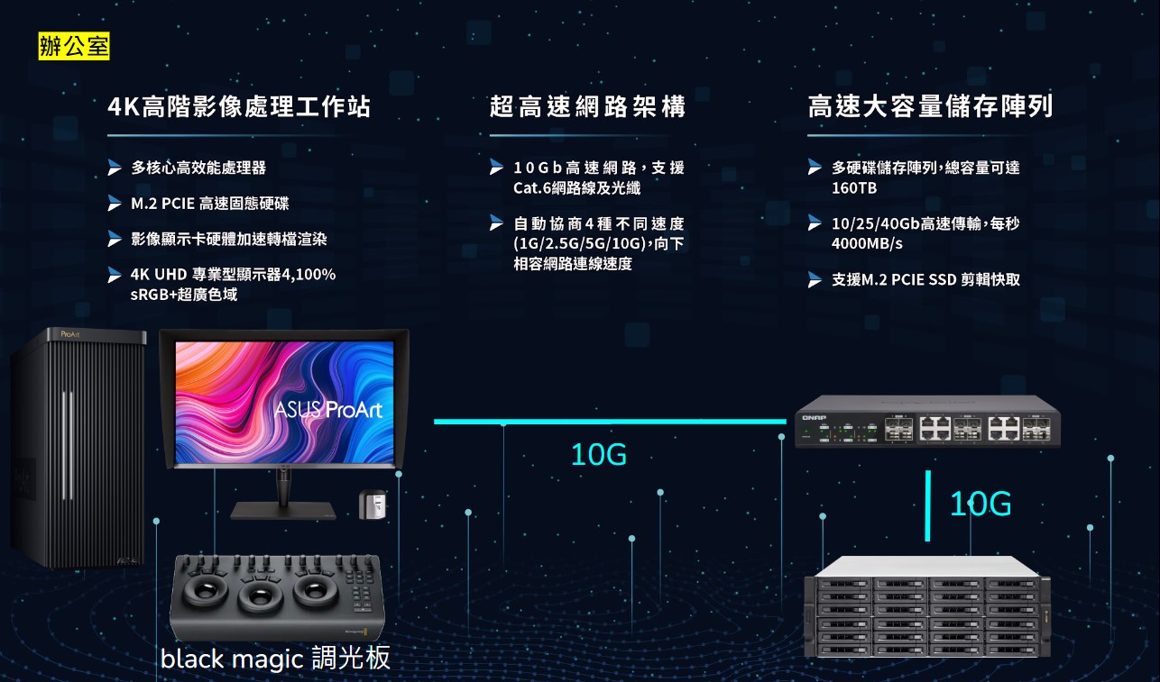 👉在製片公司或後製公司,我們要安全的備份到公司電腦、解決長期儲存,與如何給予各後製公司檔案,更甚者要直接在線編輯這部分會帶您認識大型NAS與長期備份方案、至後期公司的硬碟選擇。