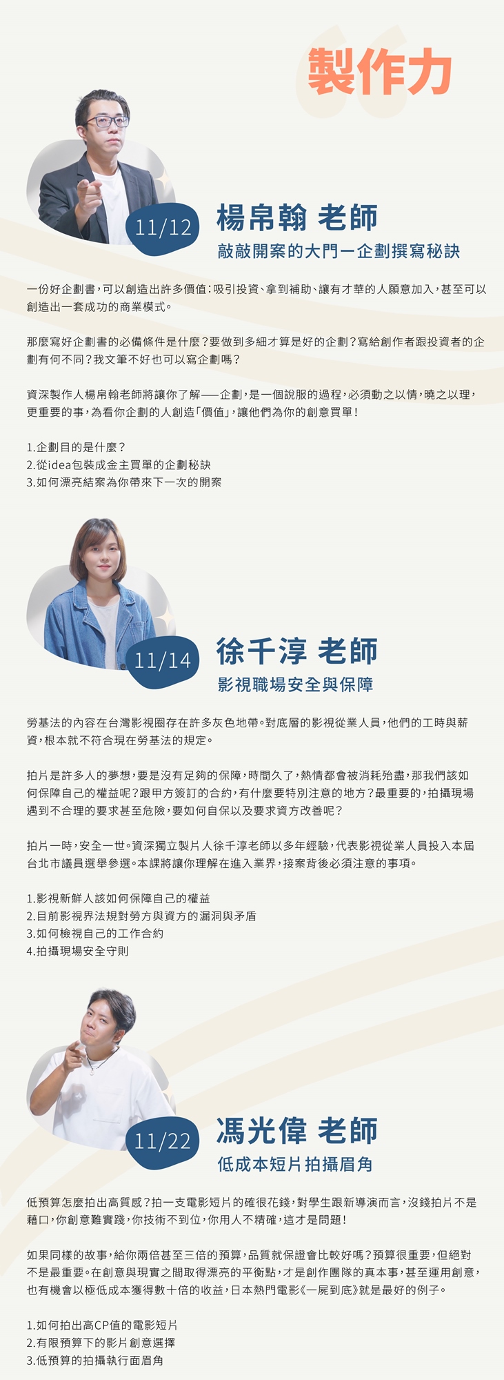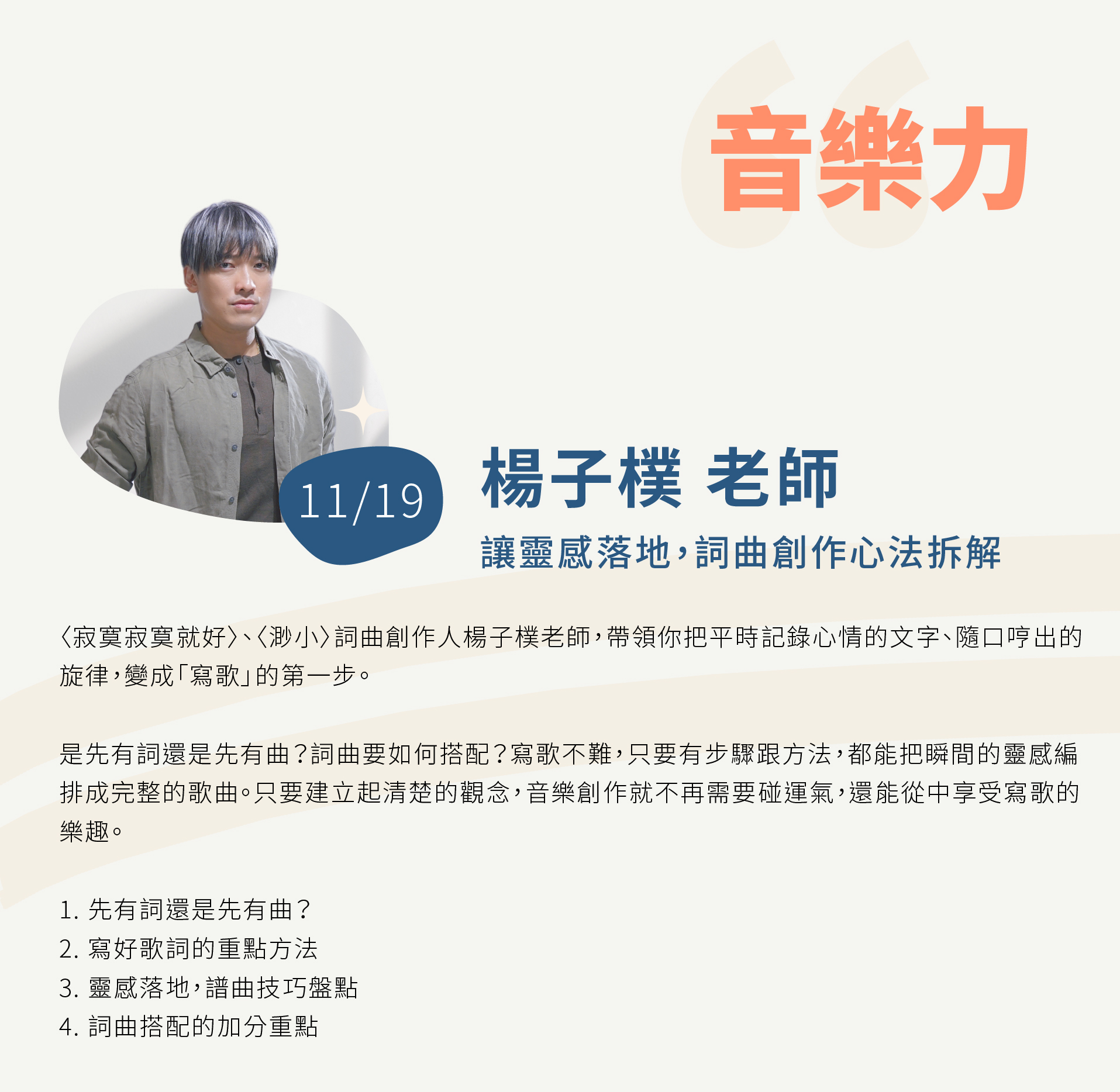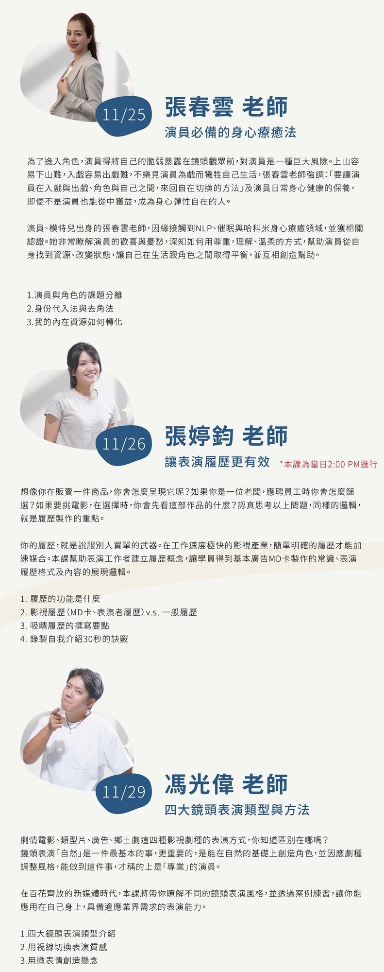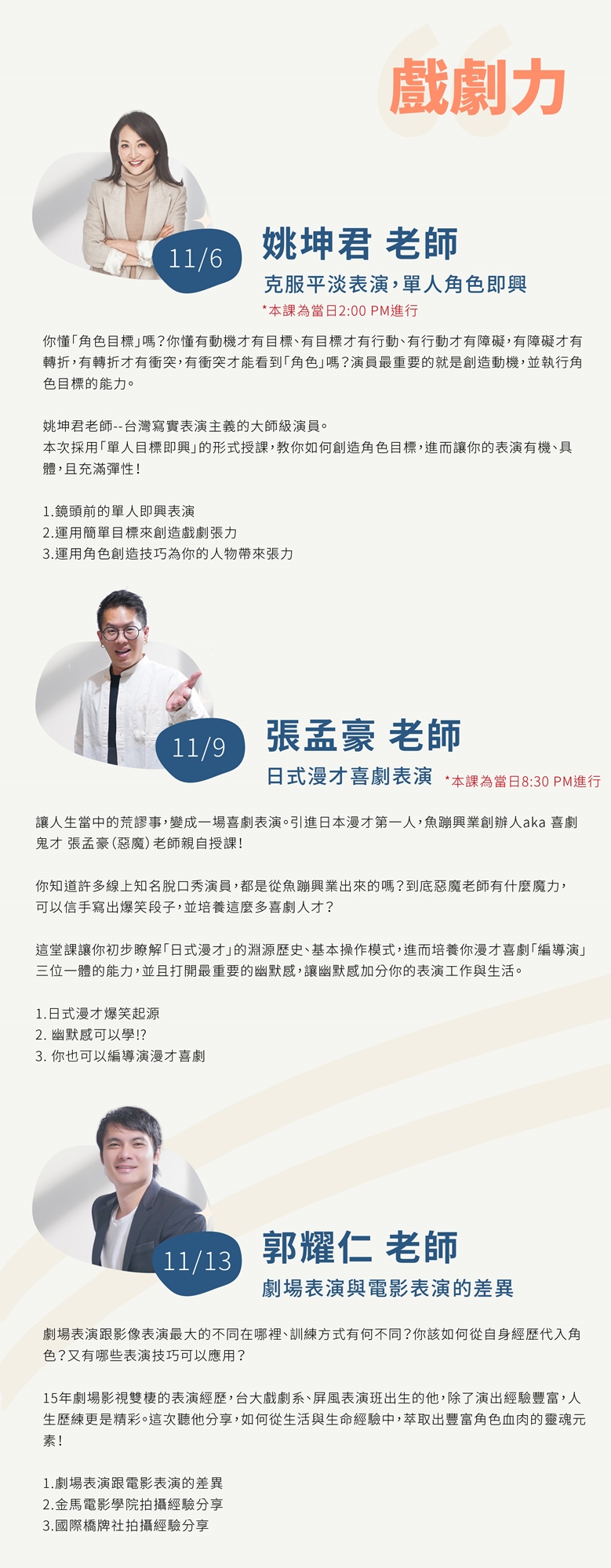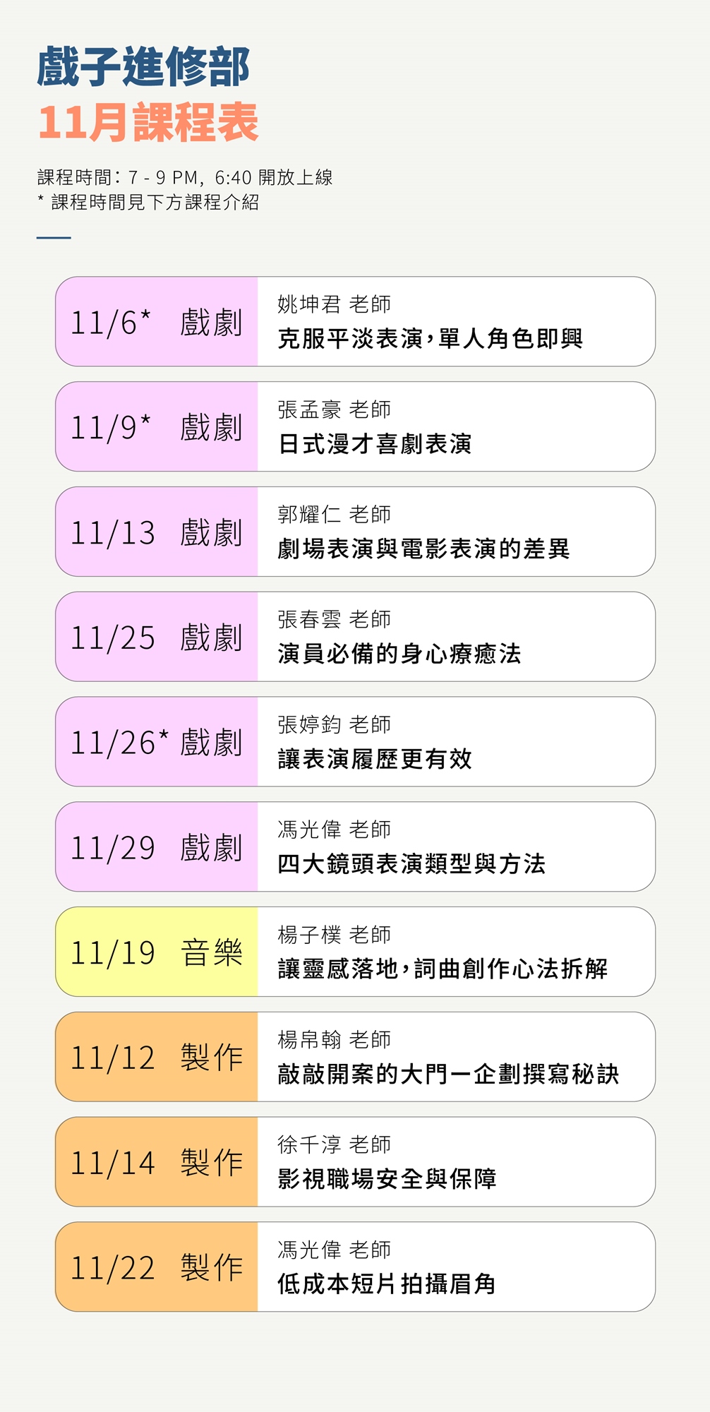 十一月【戲子進修部】提升你的表演競爭力|音樂X演員X製片