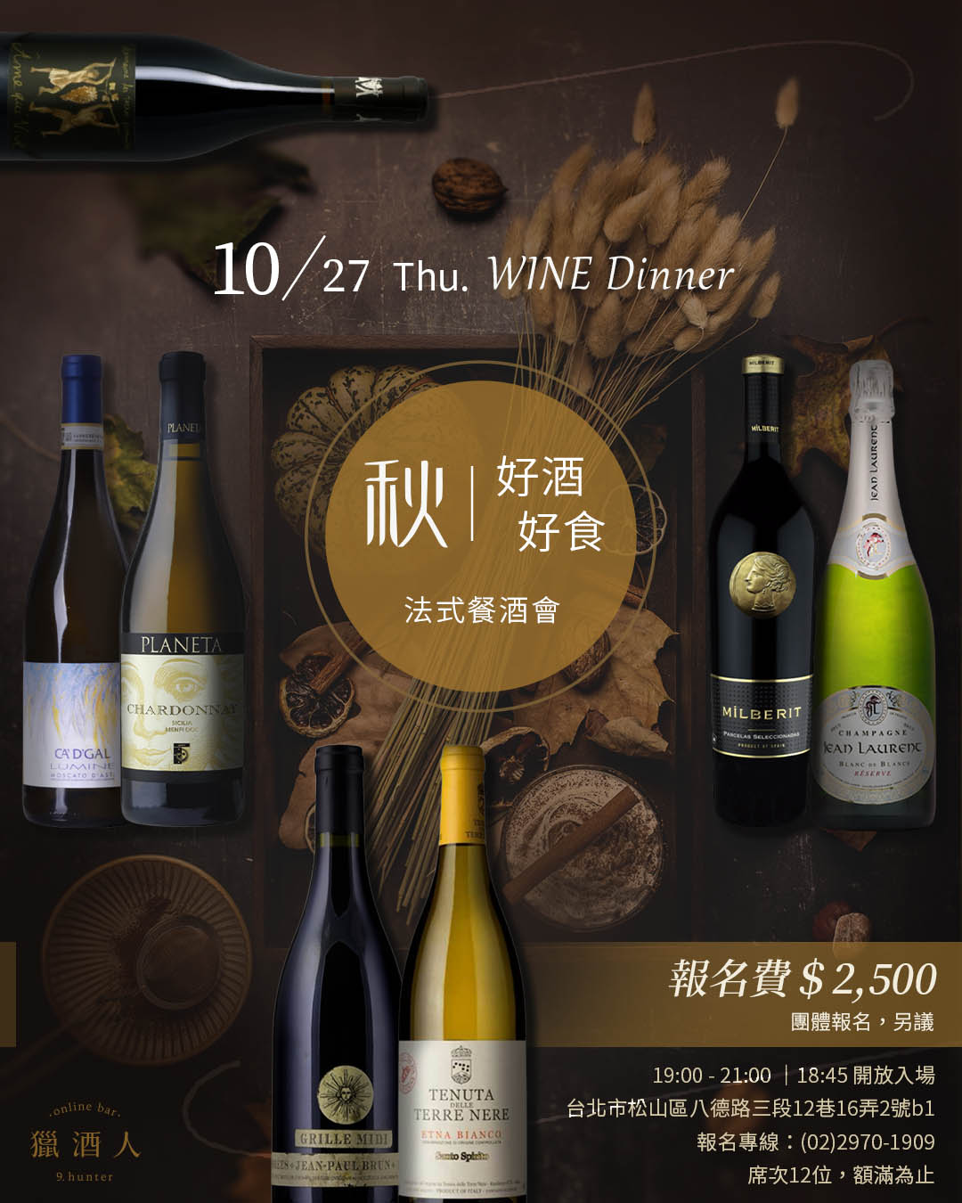 【秋|好食 ‧ 好酒 | WINE Dinner | 法式餐酒會報名資訊 】