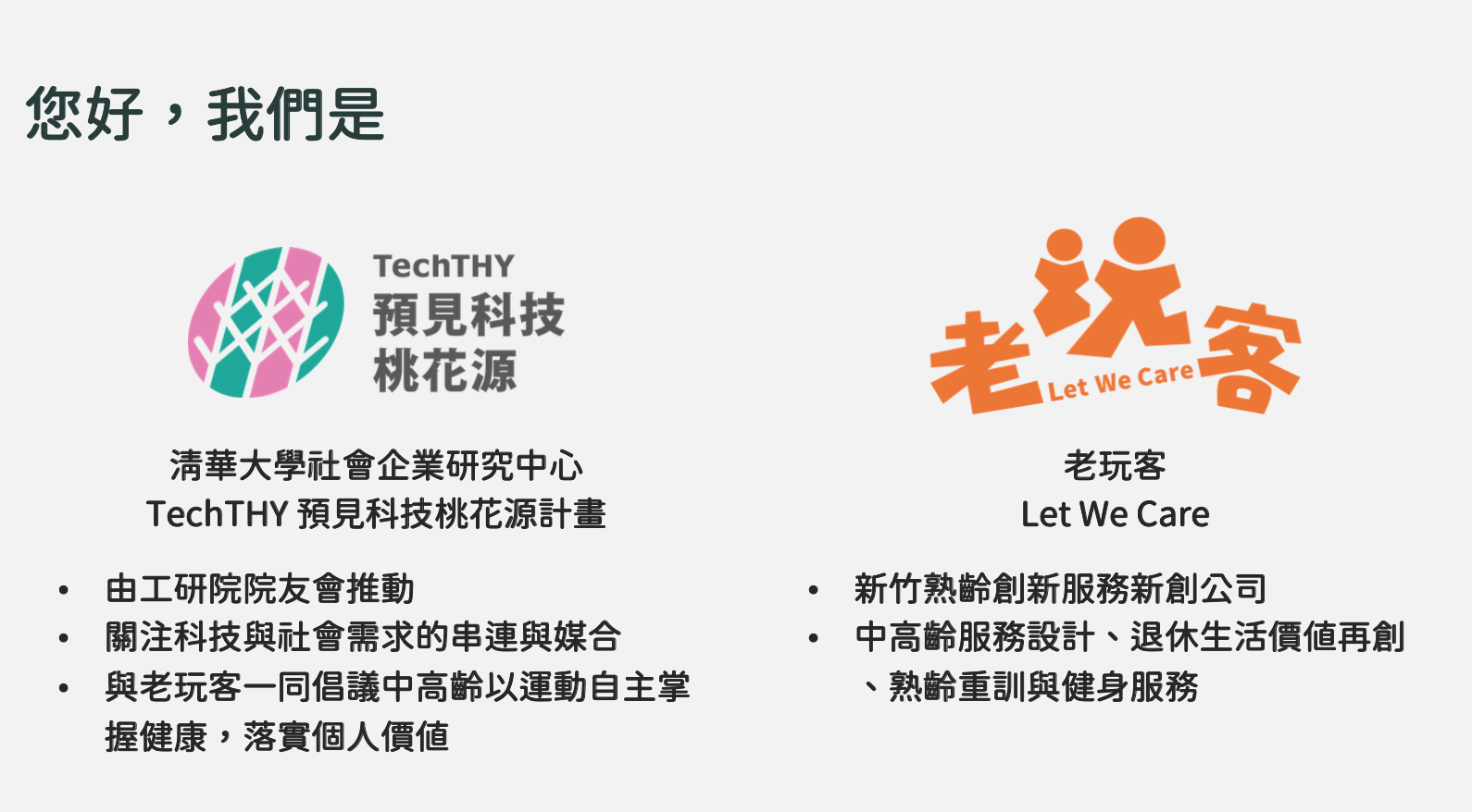 清大預見科技桃花源計畫與熟齡創新團隊老玩客 Let We Care,長期致力以創新方式向中高齡推廣健康及活躍老化,鼓勵高齡者透過規律運動,打開社會對於樂齡的想像,在退休後持續落實個體價值於生活中。