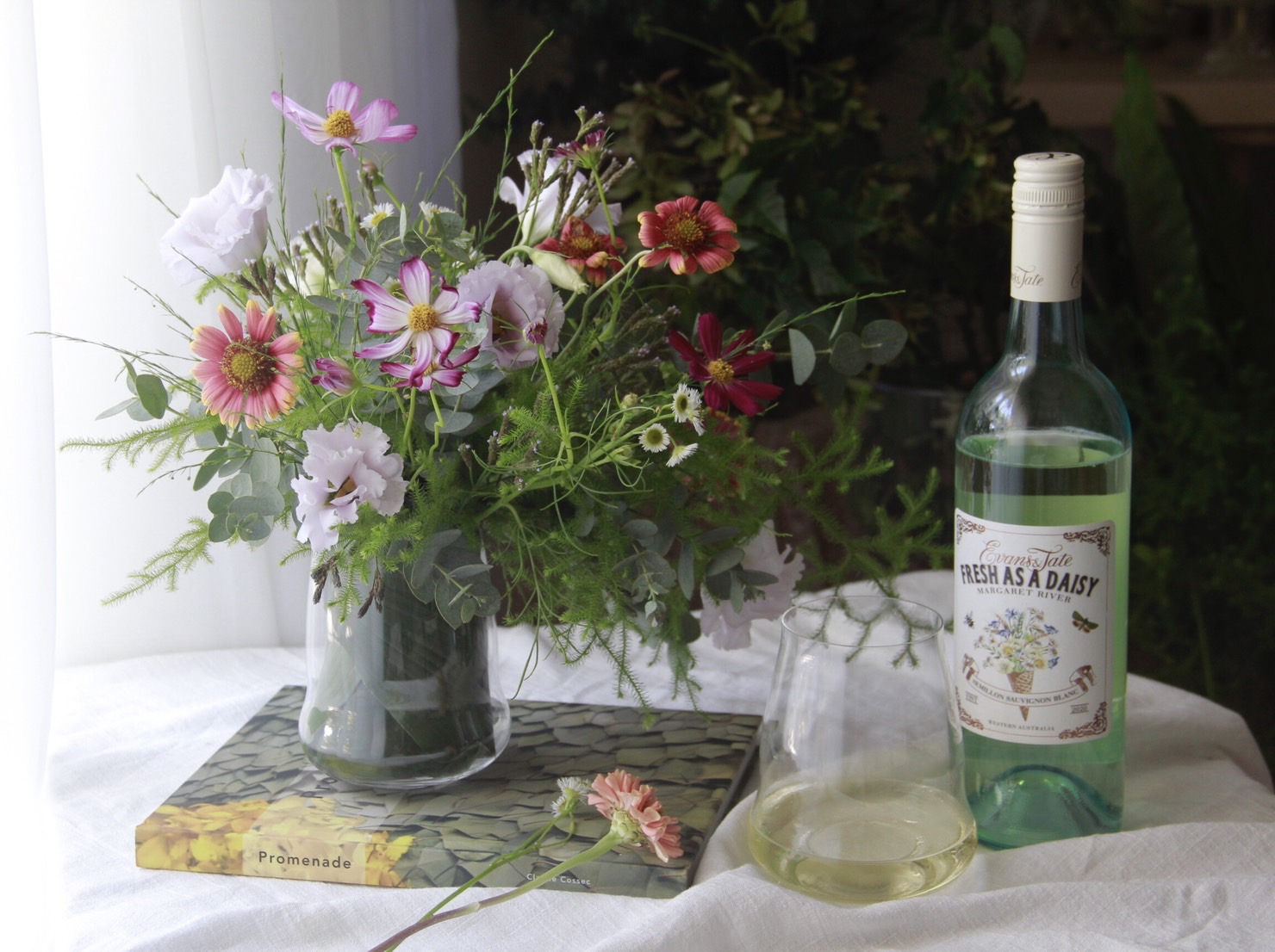 搭配輕盈多彩的當季植物,邊品酒邊插花,微醺中享受花草帶來的療癒。