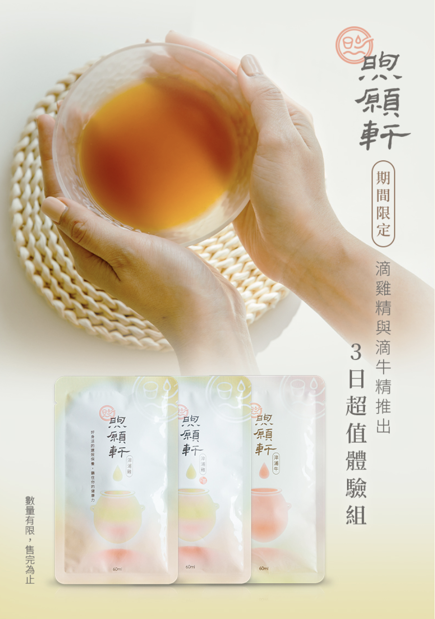 ■ 福利:參與就送「煦願軒|滴雞精與滴牛精三日體驗組」價值$810