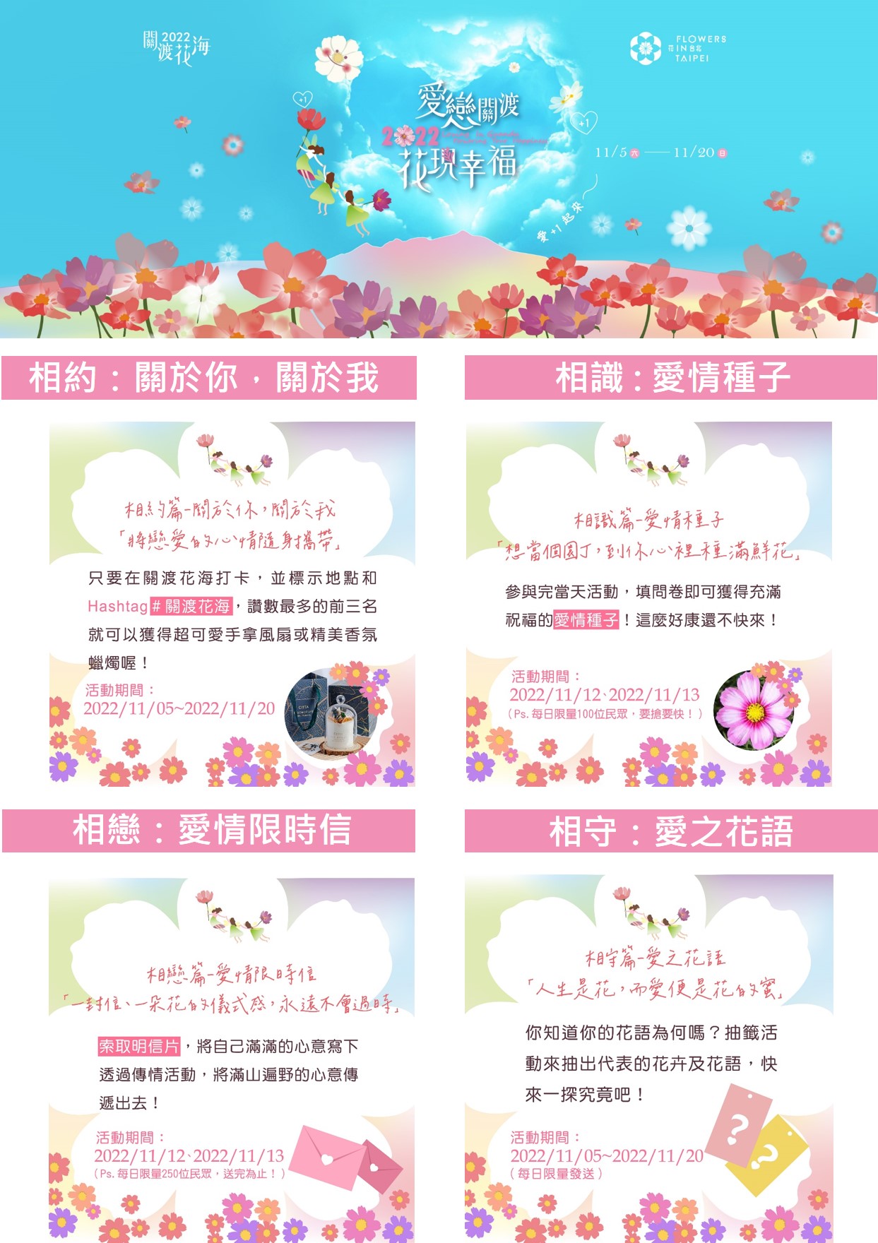 更多活動資訊,歡迎關注「愛戀關渡 花現幸福」FB粉專~~點選我了解更多花海資訊