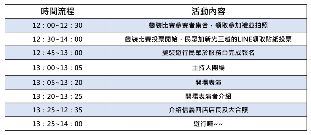 民眾評分:當日民眾評分,邀請民眾於舞台旁的服務處加入新光三越的LINE即可獲取貼紙投票,
