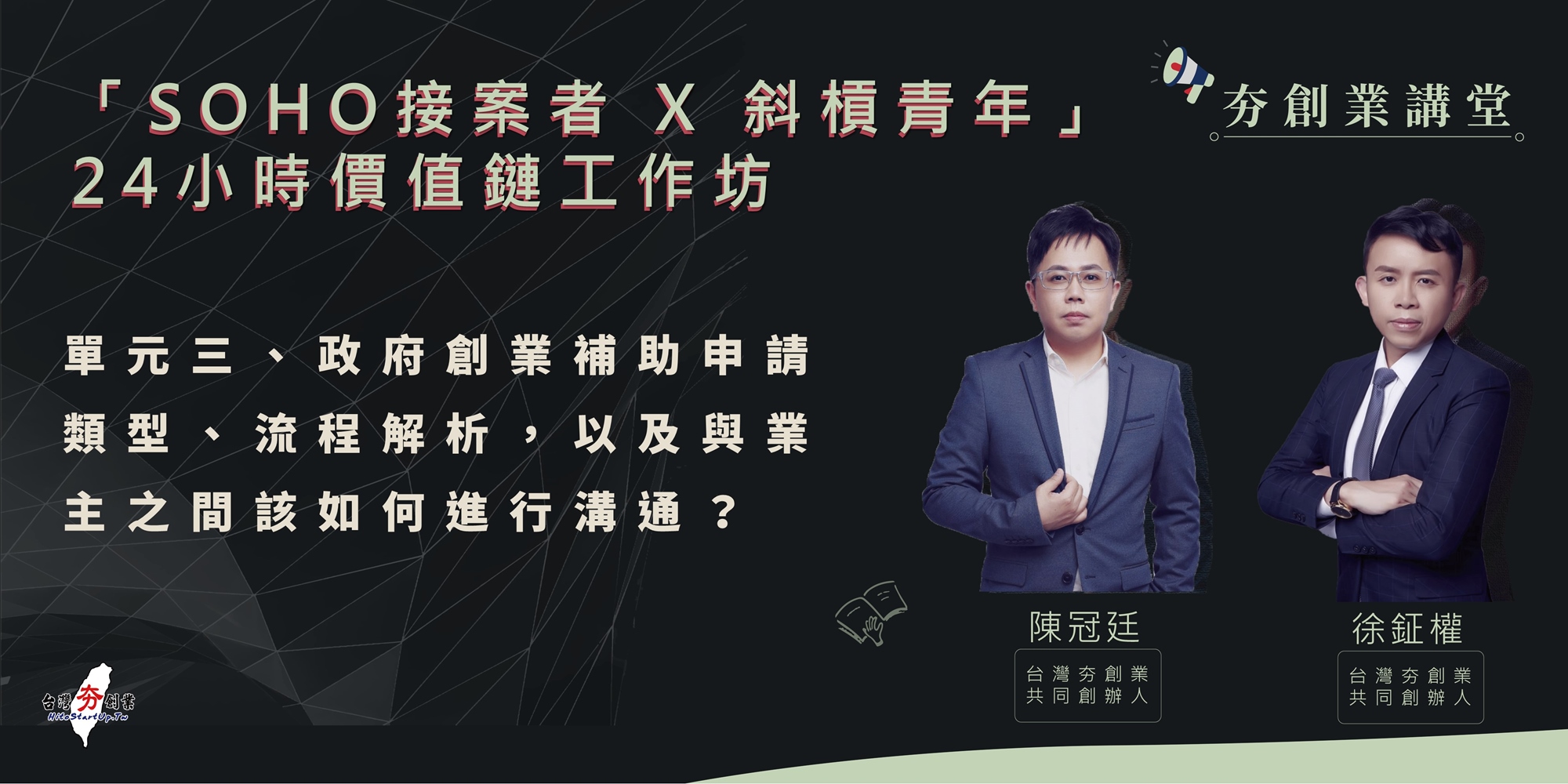 「SOHO接案者 X 斜槓青年」24小時價值鏈工作坊