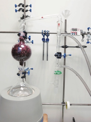 蒸餾純露和進入廚房做一道料理一樣,需要設備(蒸餾器)、食材(植物)、溫度控制(火力)、還有食譜,食譜就像是蒸餾中的「料液比」,水與植物的比例分別為多少是最好的蒸餾條件?而且,每一種植材的料液比都不同!