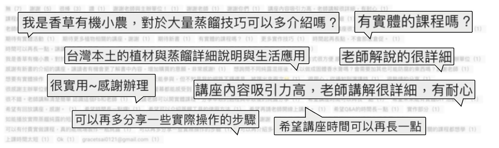 此階段將分享溫度與時間的控制、蒸餾過程要點、到蒸餾結束時的油水分離、過濾、包裝,跟著余珊老師進入實驗室,一起在線上體驗一次完整流程。