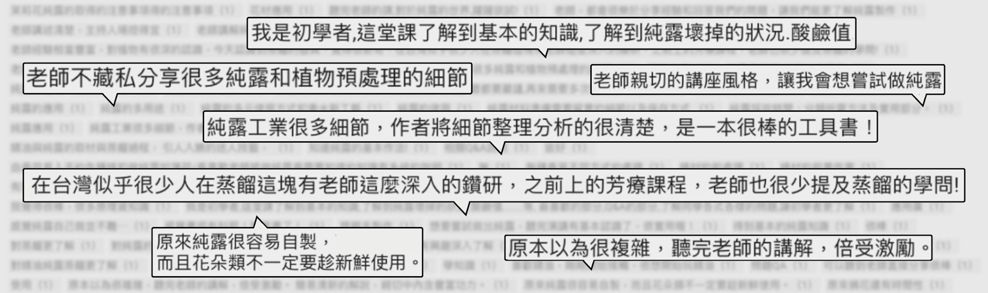 臺灣純露蒸餾教學第一人——余珊老師,在這場講座中,將帶領學員深入分析蒸餾技術的原理,並且提供更詳細的實作流程經驗分享。自己在家蒸餾純露,天然無毒且經濟實惠,沒有經驗的初學者也能做到嗎?當然可以!