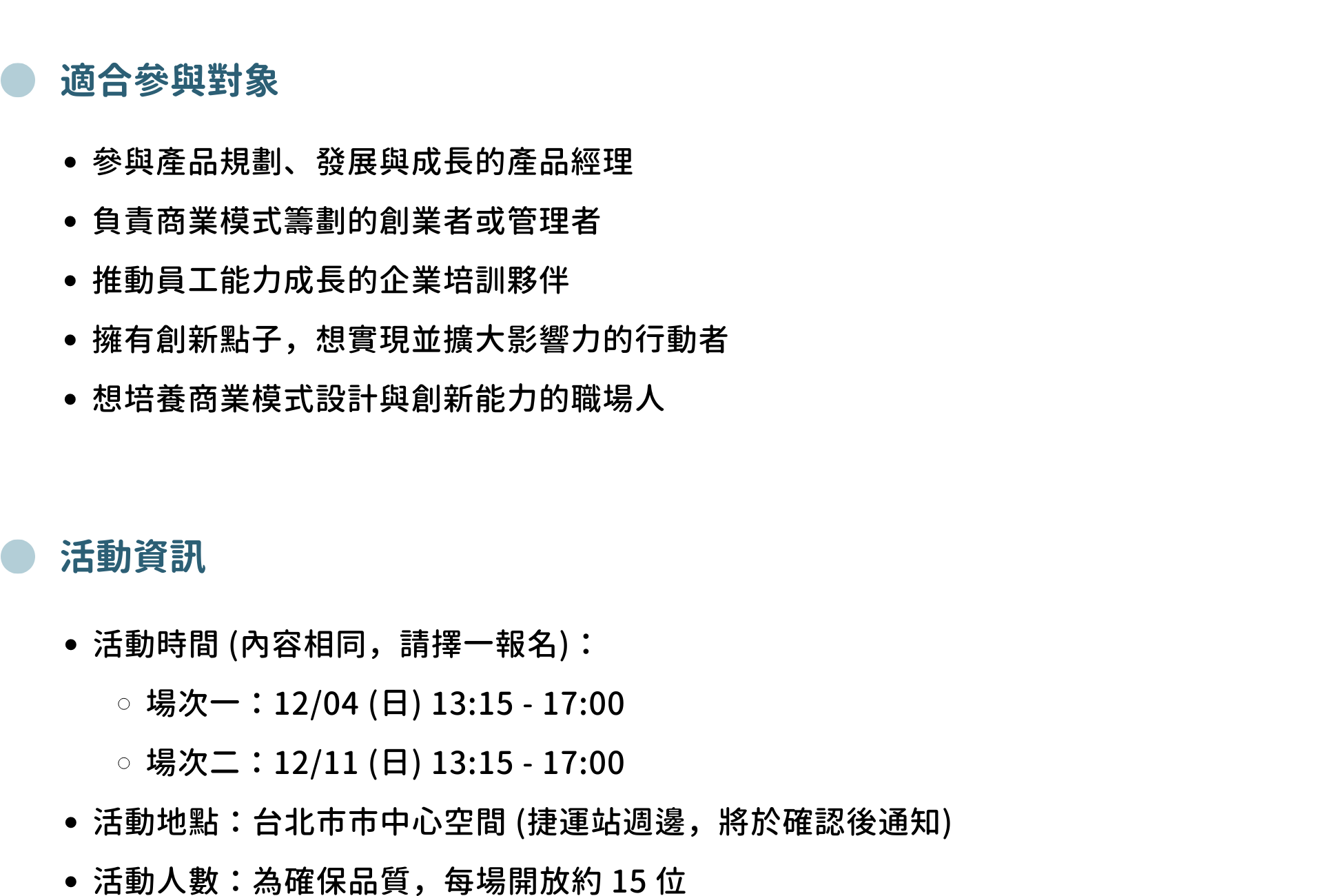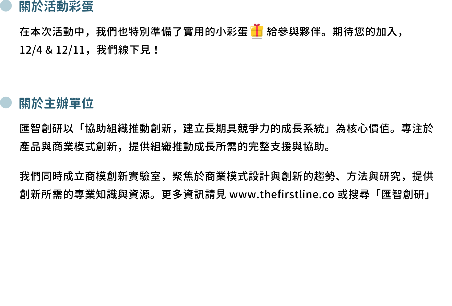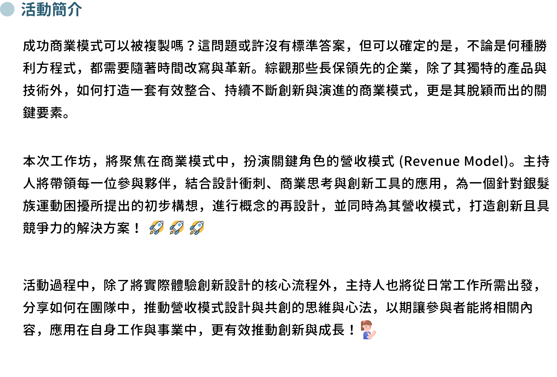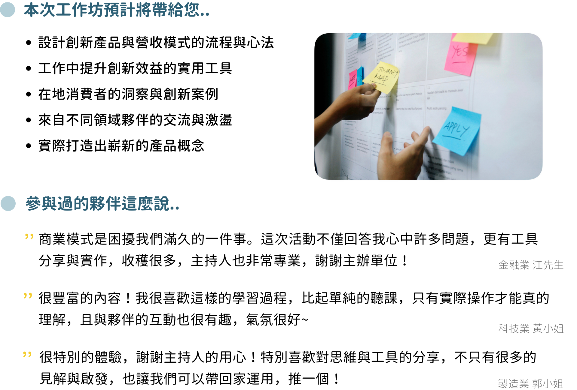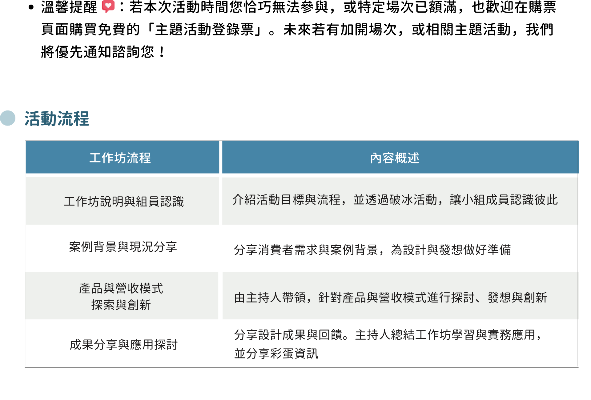 開創邁進:創新營收模式 設計工作坊|免費體驗場