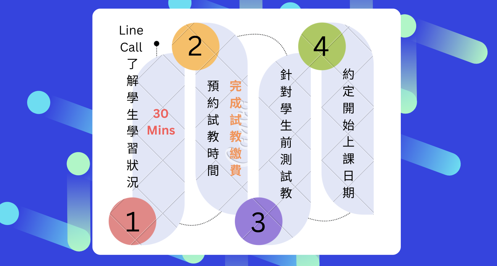 以學生程度為主,學校進度為輔。 試教時會提供前測了解學生程度,前一個月會先以協助學生訂正過往做錯的考題為主,再針對觀念補充練習題。上課過程中會專注在與學生討論同一個題目不同的解題思路,用討論來取代大量的運算練習,間接訓練學生表達個人思路的溝通能力,提出好的問題,培養獨立思考的素特質。