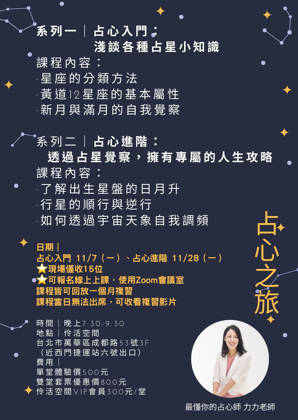 日期|占心入門 11/7(一)、占心進階11/28(一)