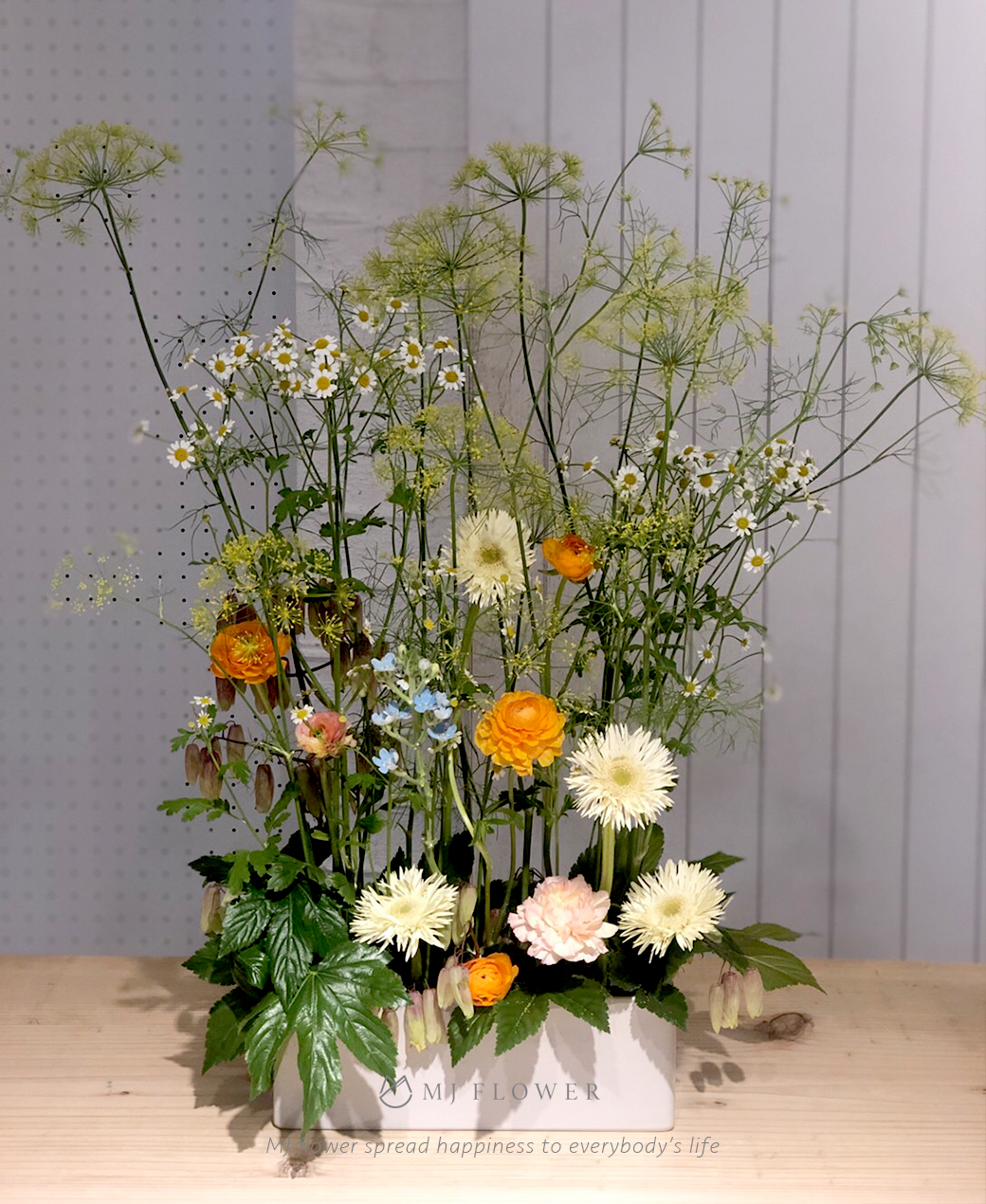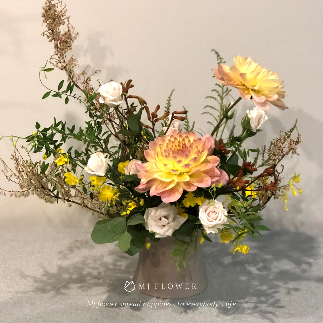 你可學到基礎圓型、垂直型、水平盆花、手綁花束、組合盆栽……