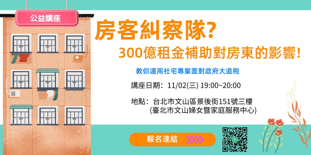 【公益講座】房客糾察隊?300億租金補助對房東的影響!