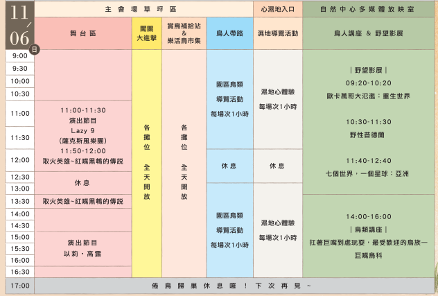 來一趟關渡參加一年一度的賞鳥盛會,豐富的演出活動、療癒身心靈、藝術家工作坊體驗、園區賞鳥趣、愛護地球小農,周末來走走吧!